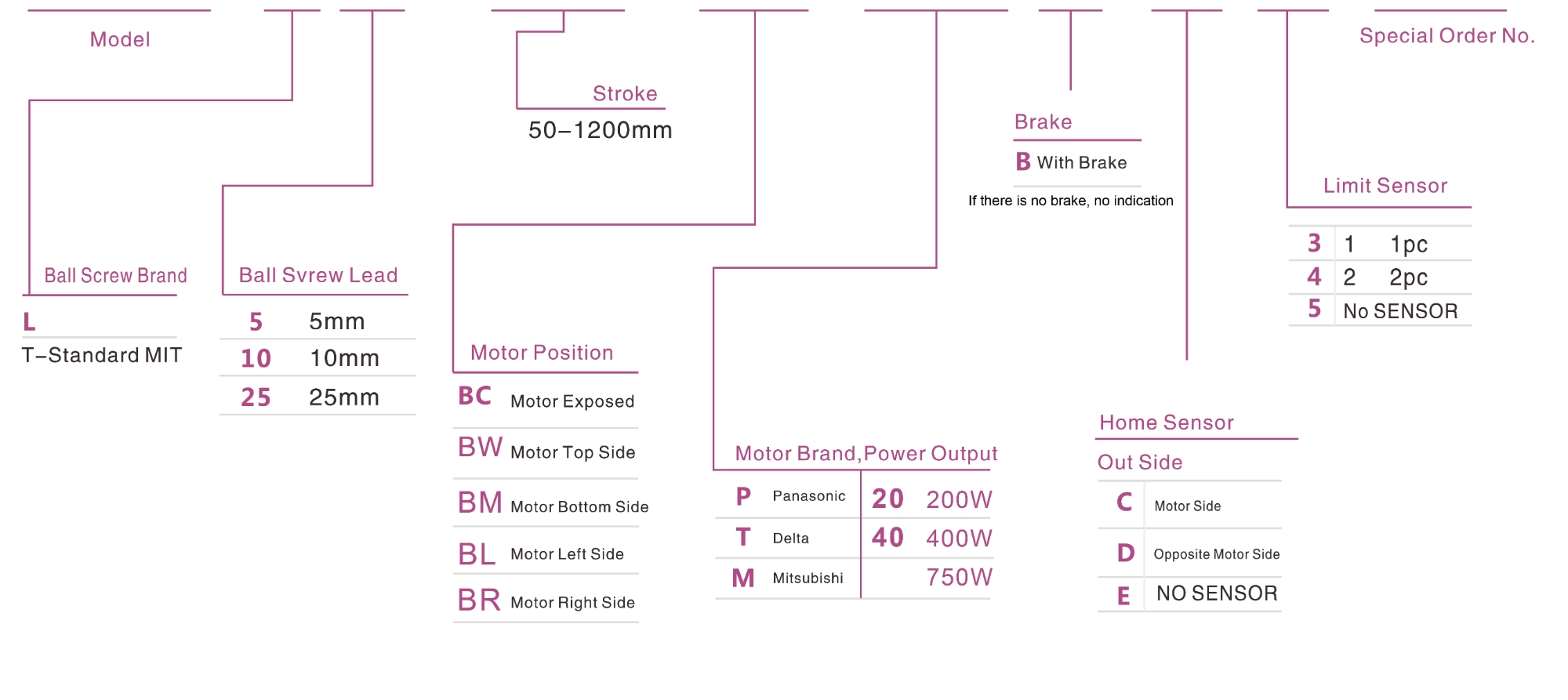 Gunakan Di ManaMod DipacuSpesifikasi ModelOutput Motor (w)Lebar (mm)Kebolehulangan (mm)Spesifikasi Skru BolaMuatan Maksimum (kg)