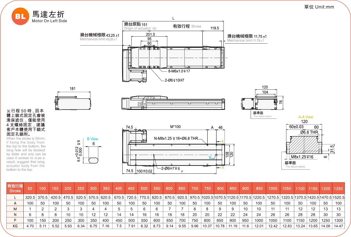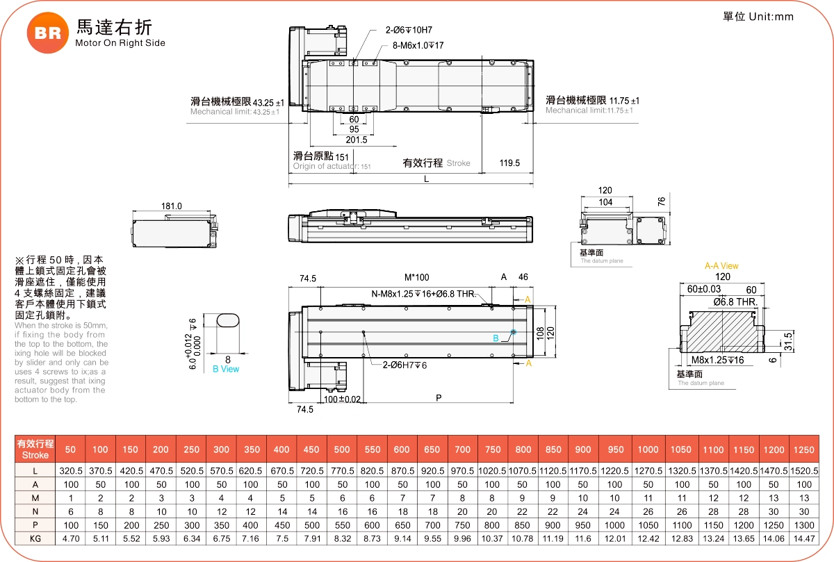 | Pitch Strok (mm) | 100-1050mm/50mm Pitch | |||||