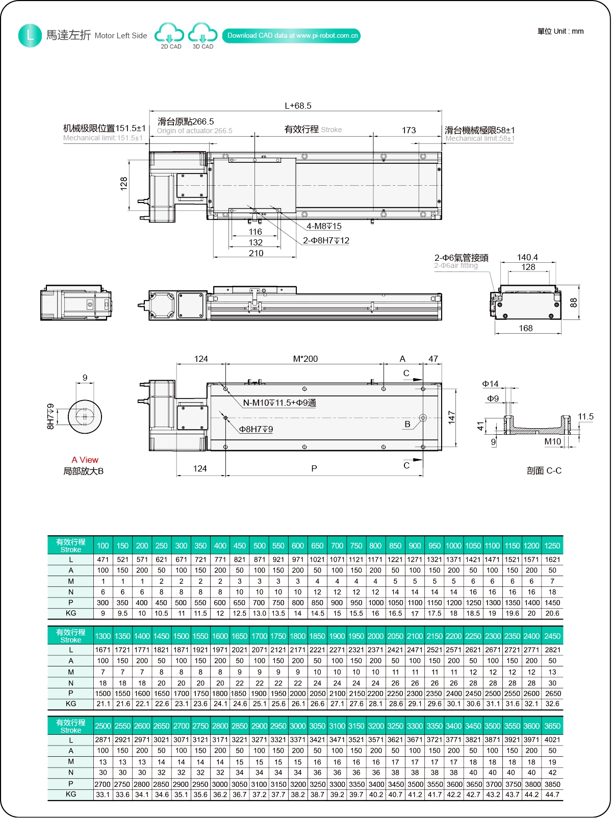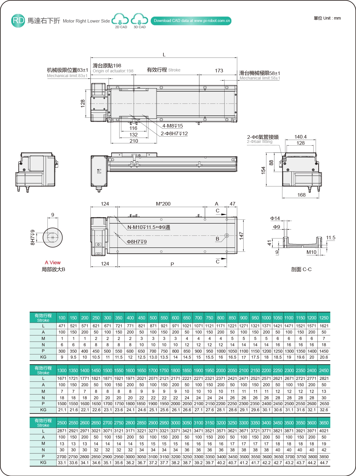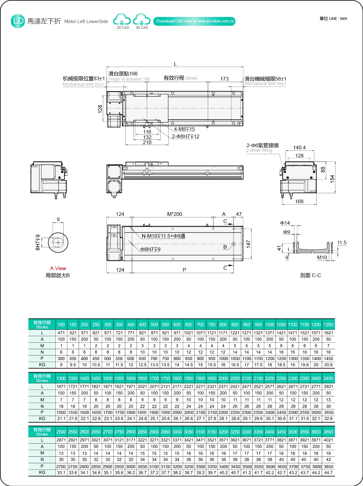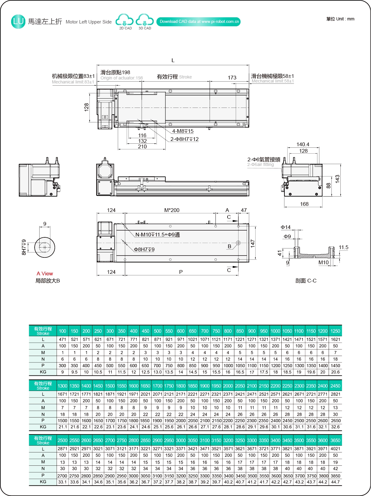 | Pitch Strok (mm) | 100-3650mm/50mm Pitch | ||