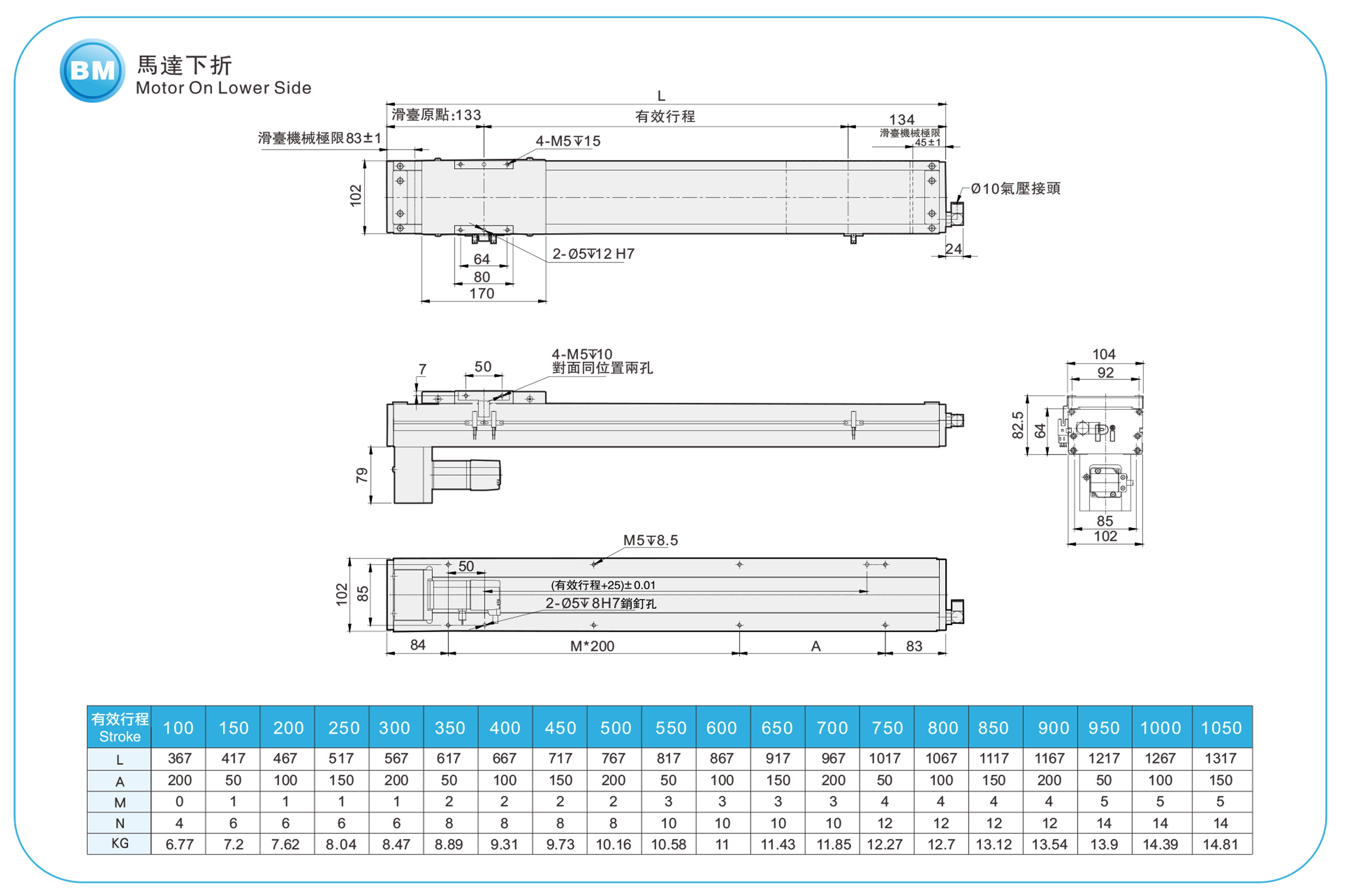 | Pitch Strok (mm) | 100-1050mm/50mm Pitch | |||||