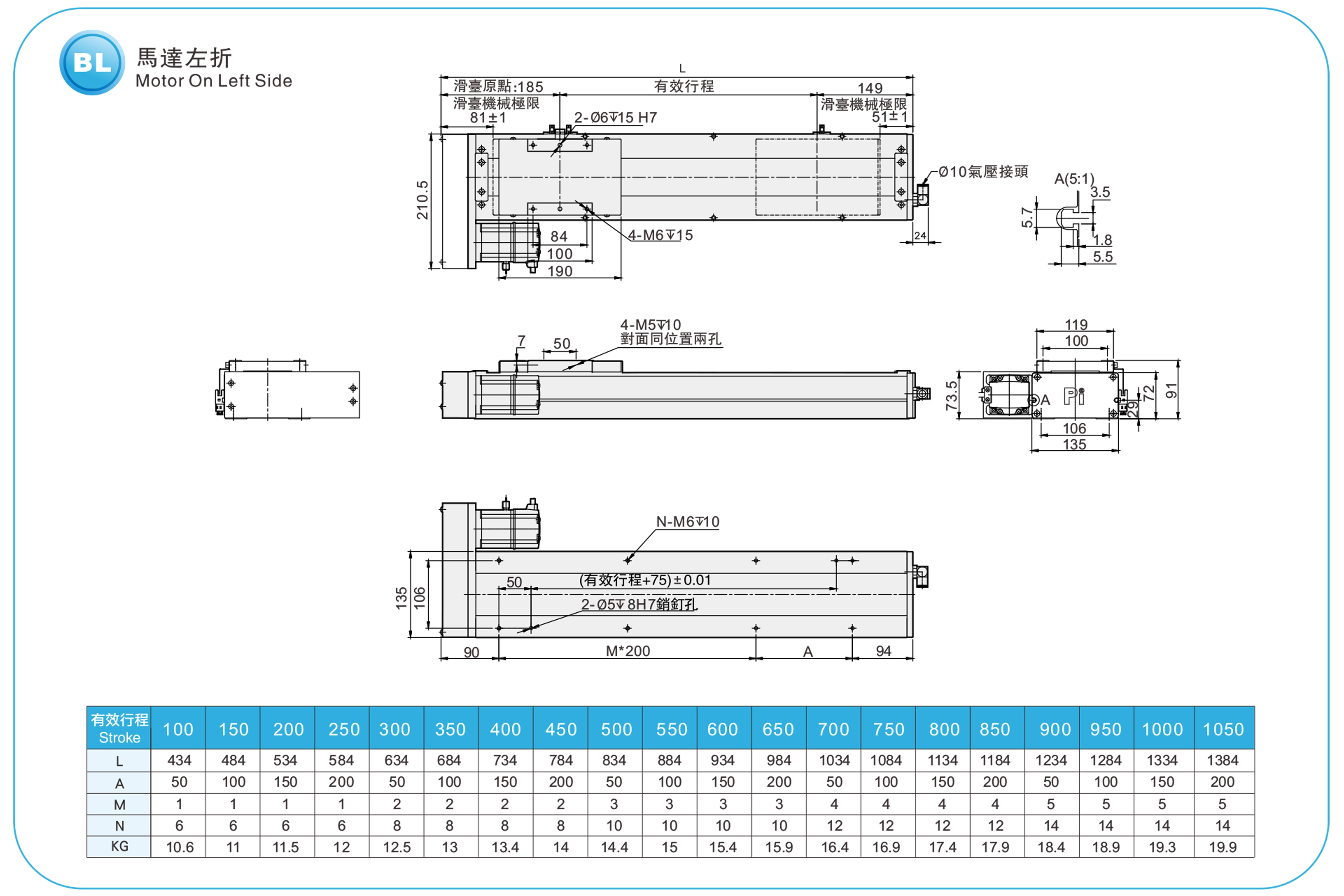 | Pitch Strok (mm) | 100-1050mm/50mm Pitch | |||||