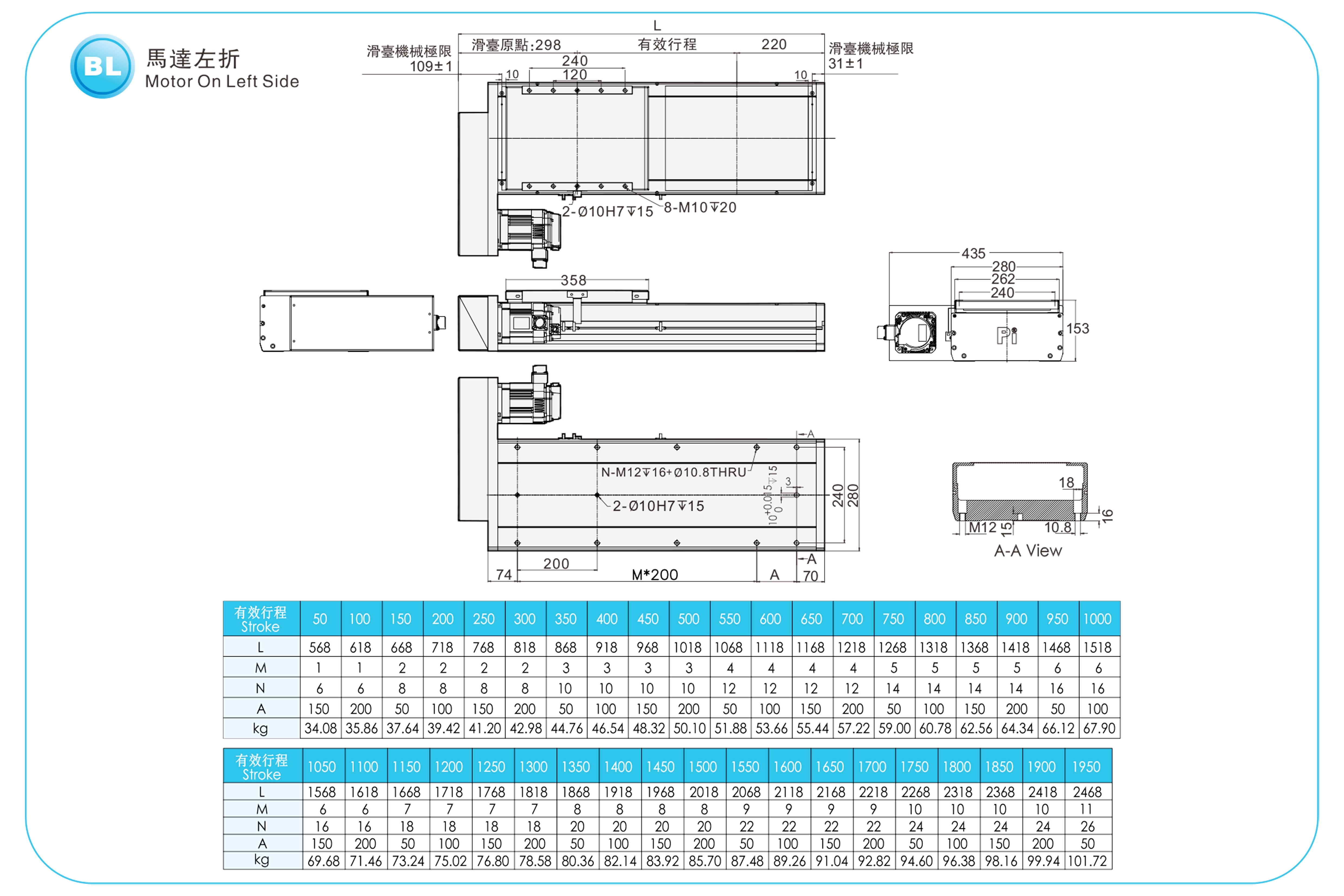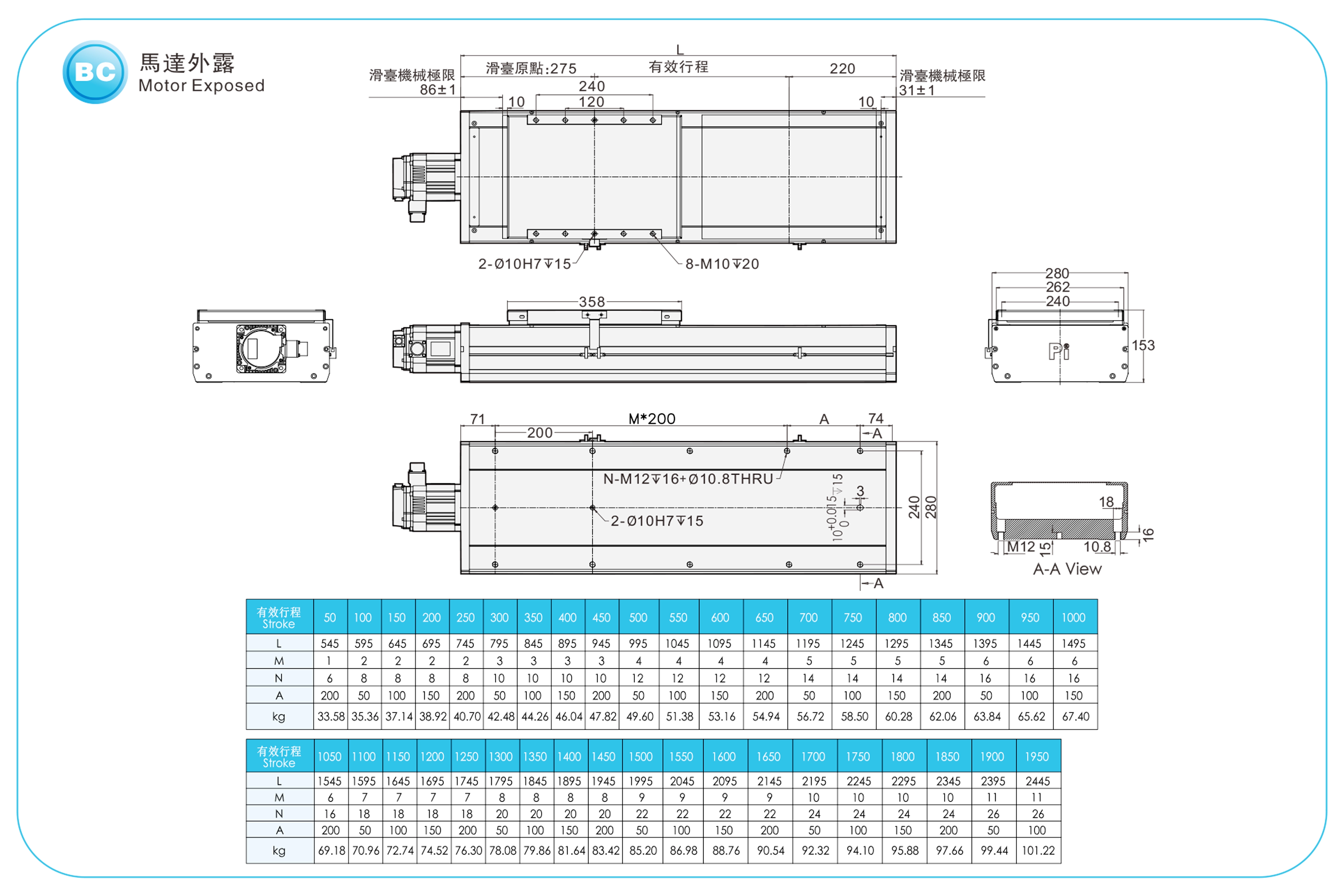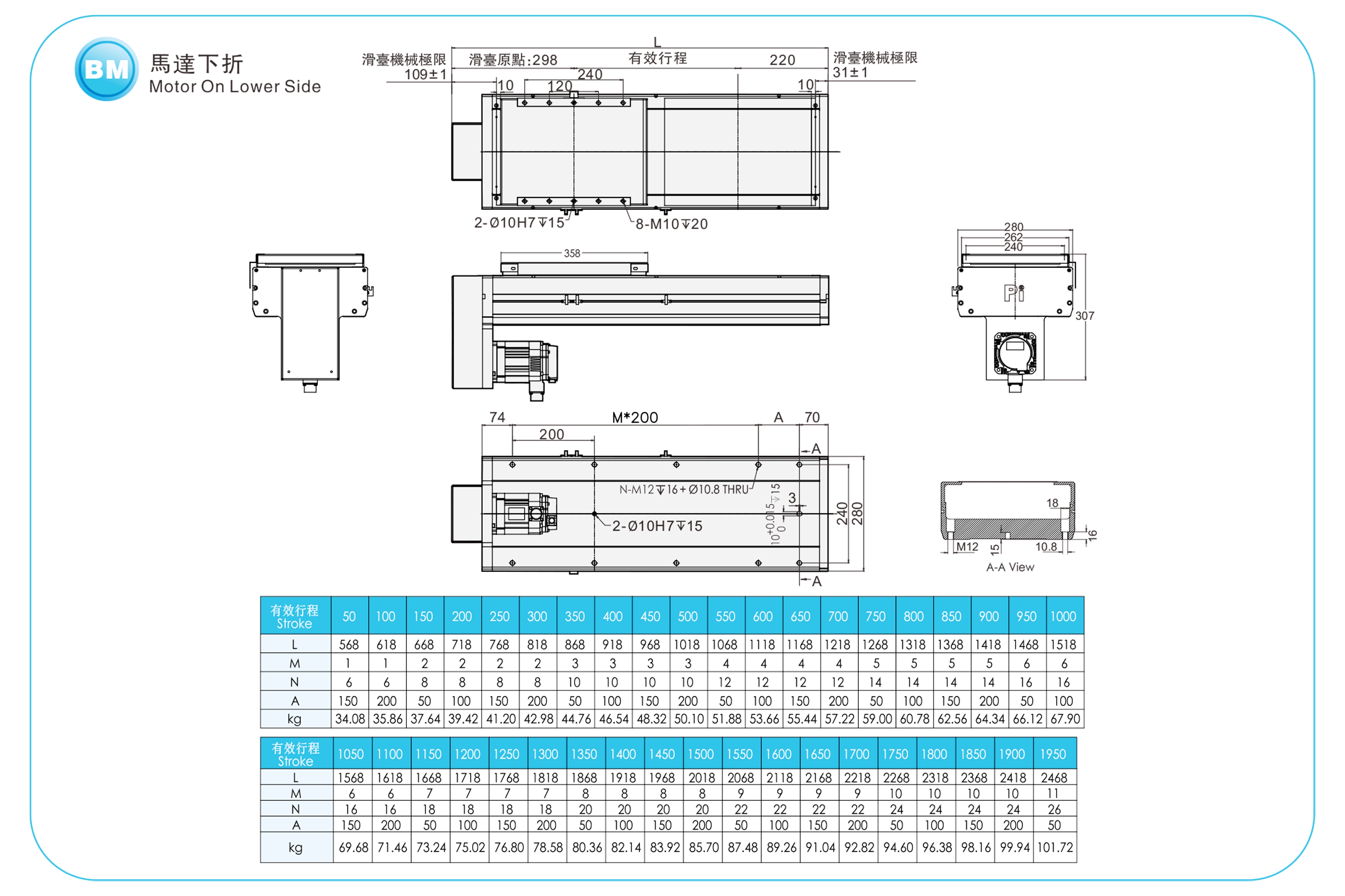 Pitch Strok (mm)100-1950mm/50mm Pitch