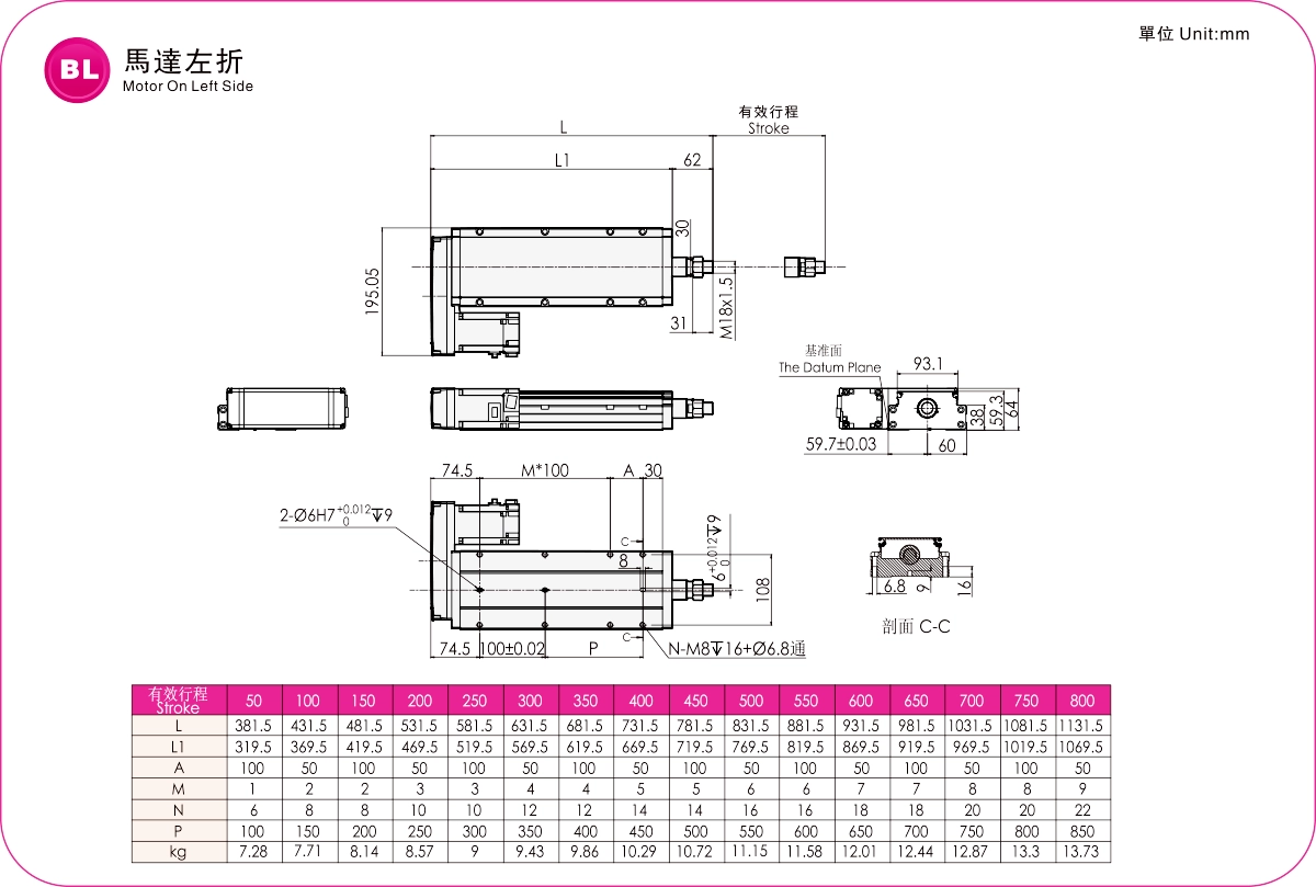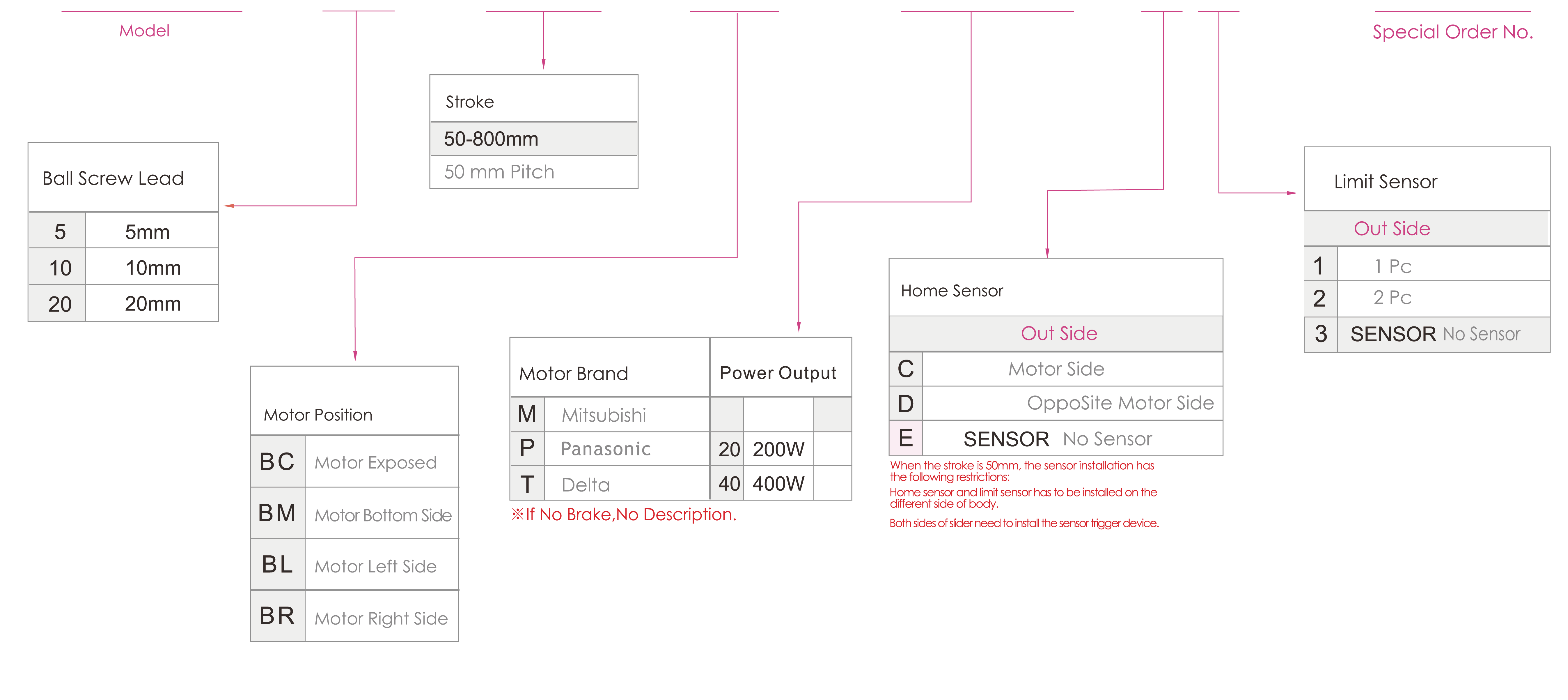 | Pitch Strok (mm) | 50-800mm/50Pitch | ||||
