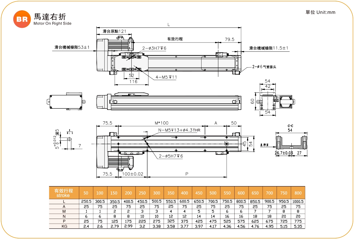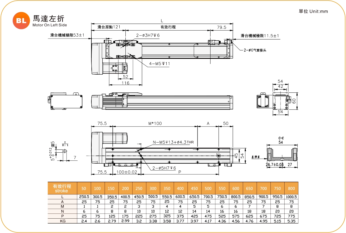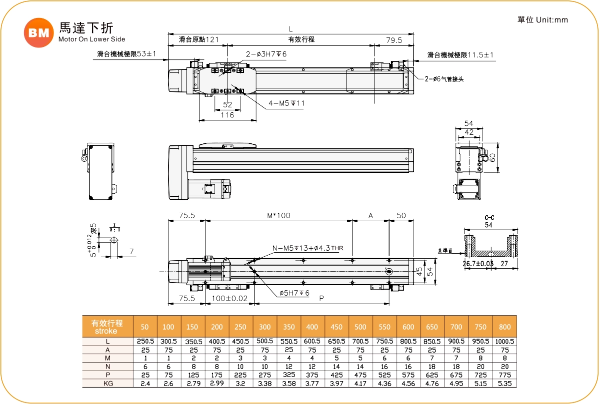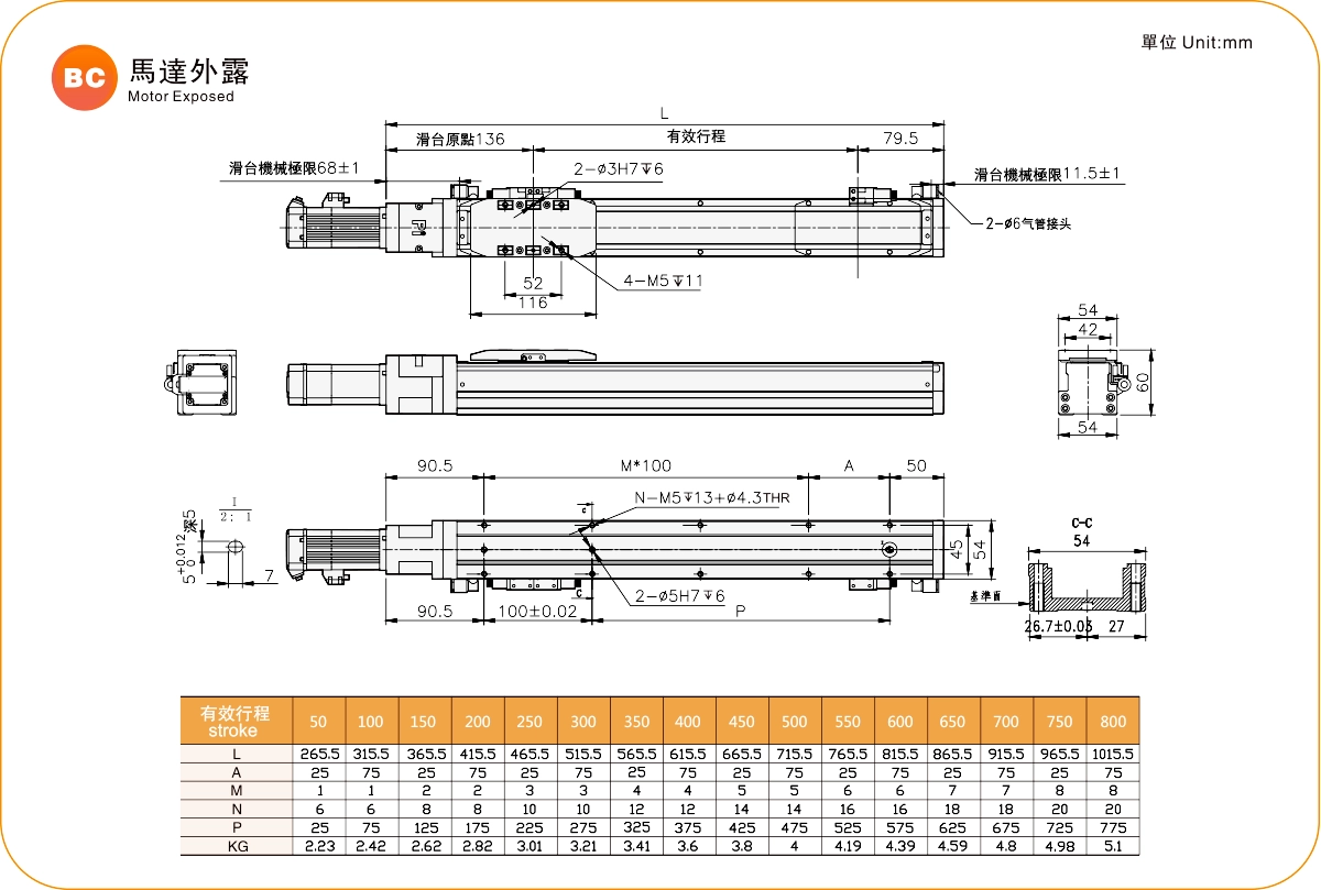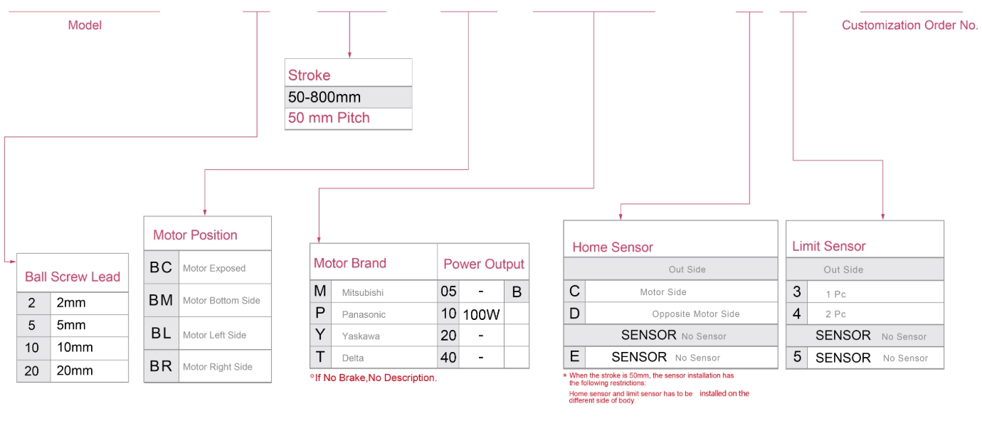 Pitch Strok (mm)50-800mm/50mm Pitch