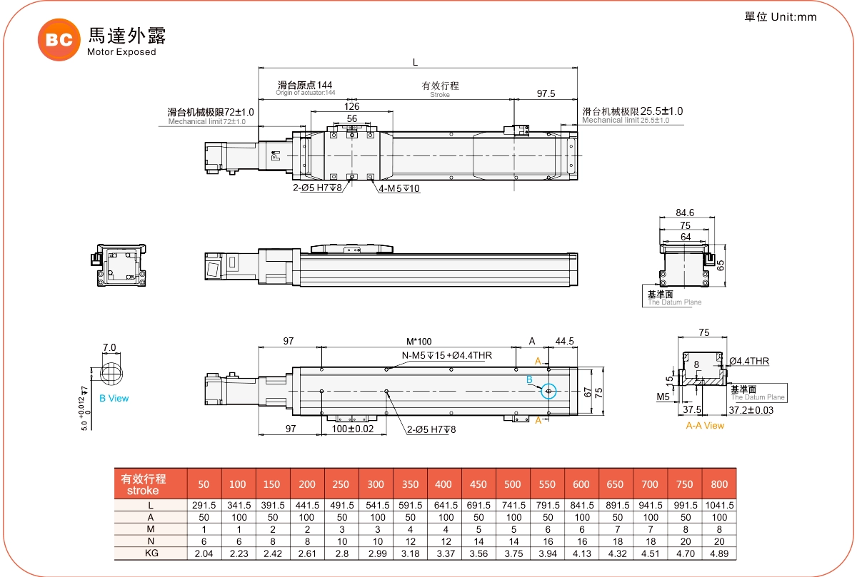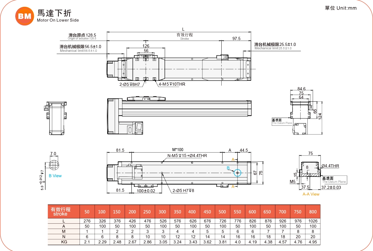 | Pitch Strok (mm) | 50-800mm/50mm Pitch | |||||