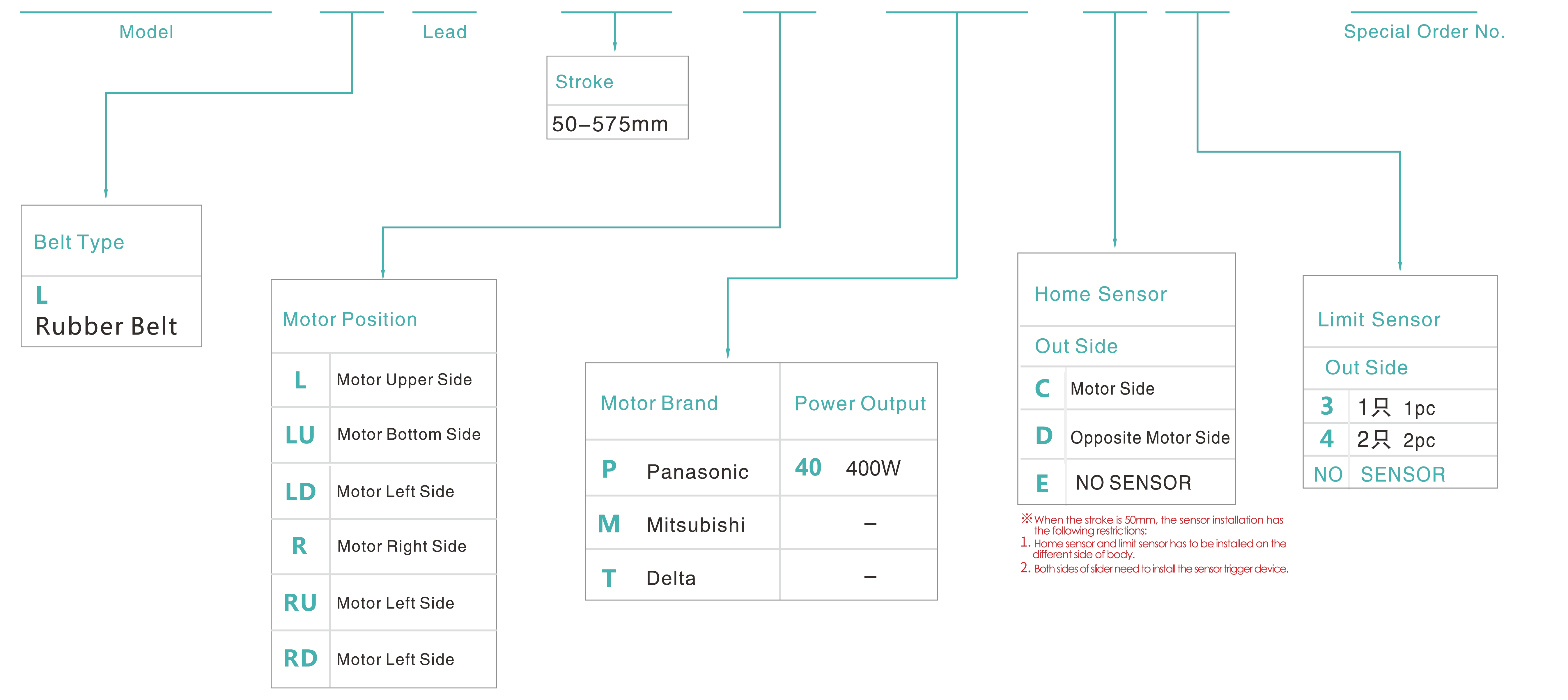 | Pitch Strok (mm) | 50-575mm/25mm Pitch | ||