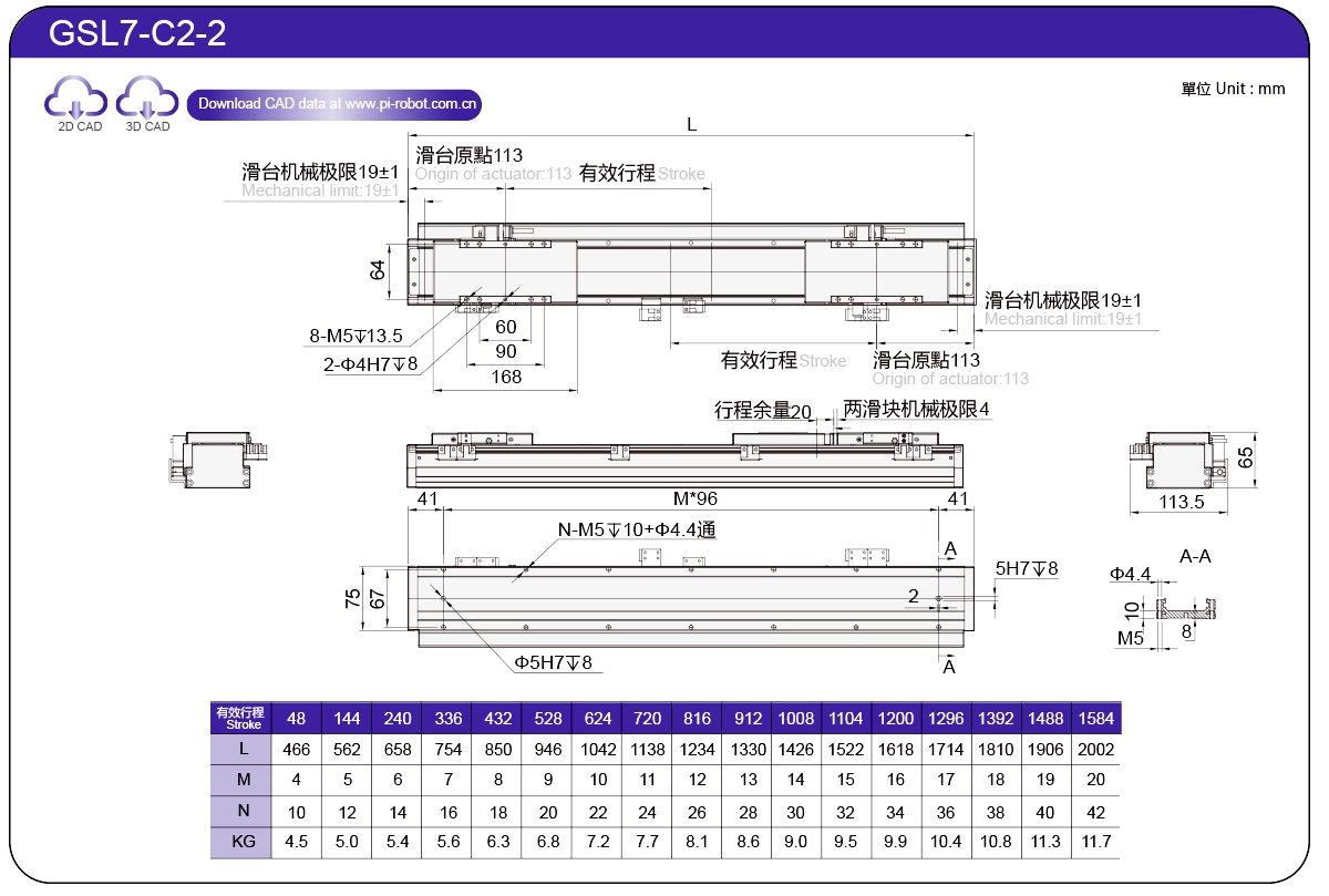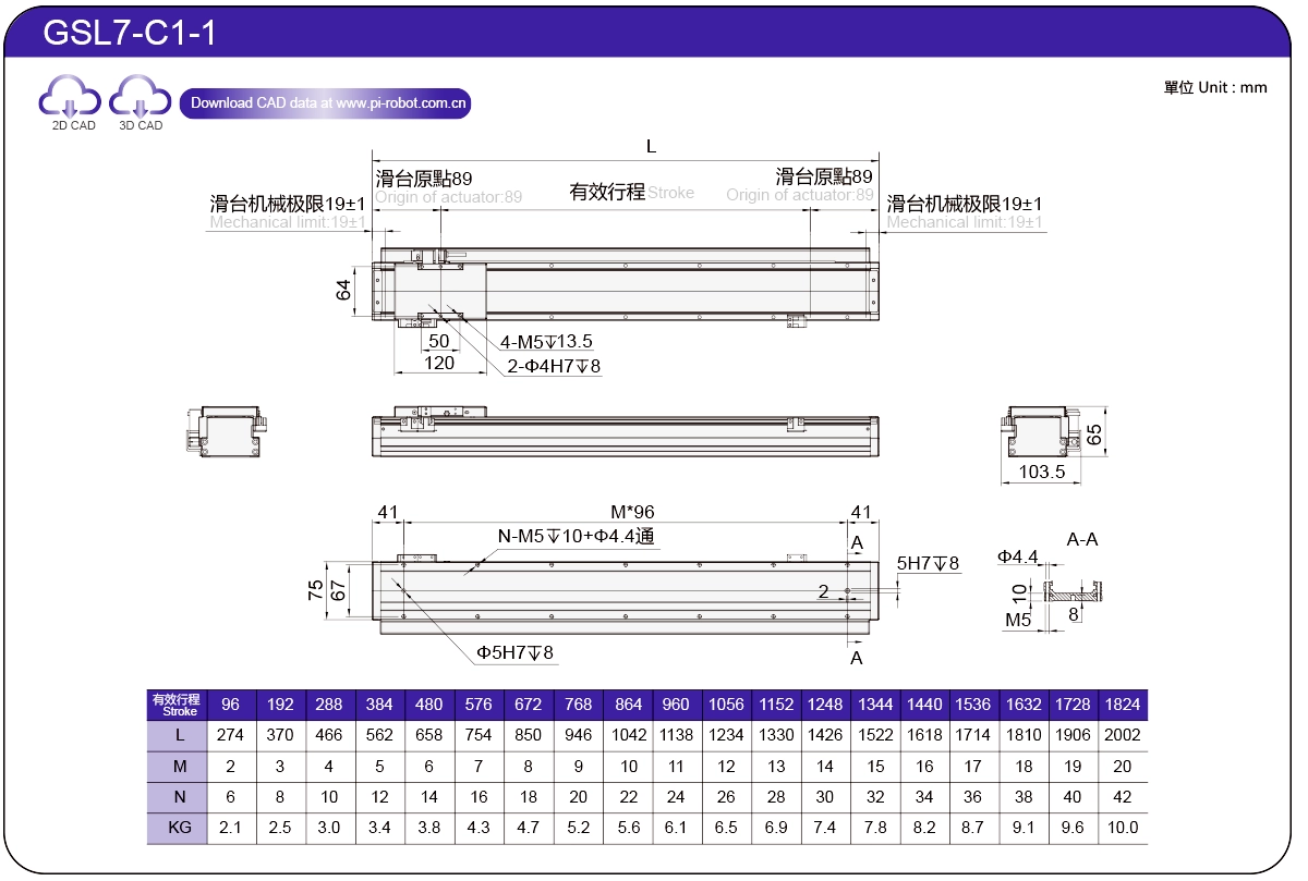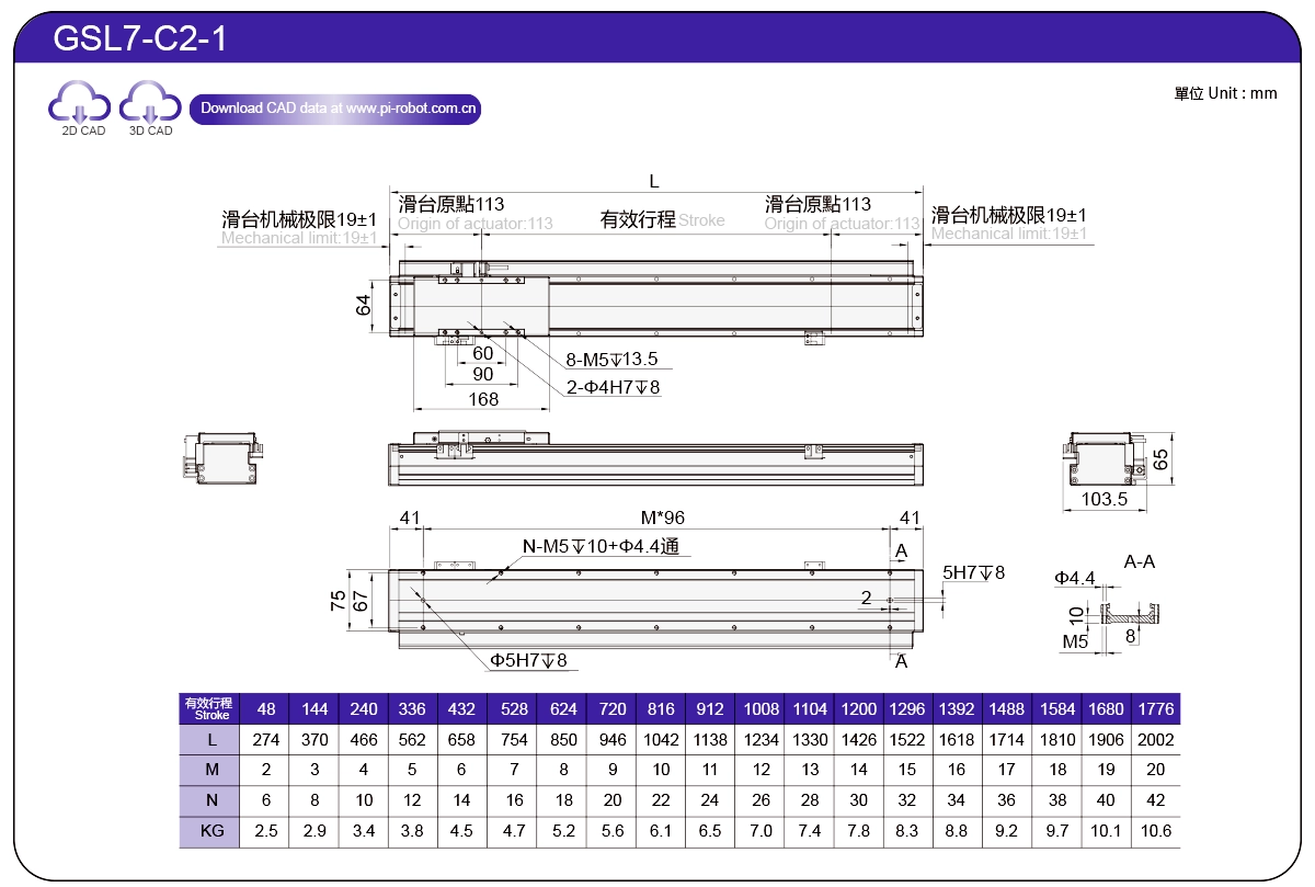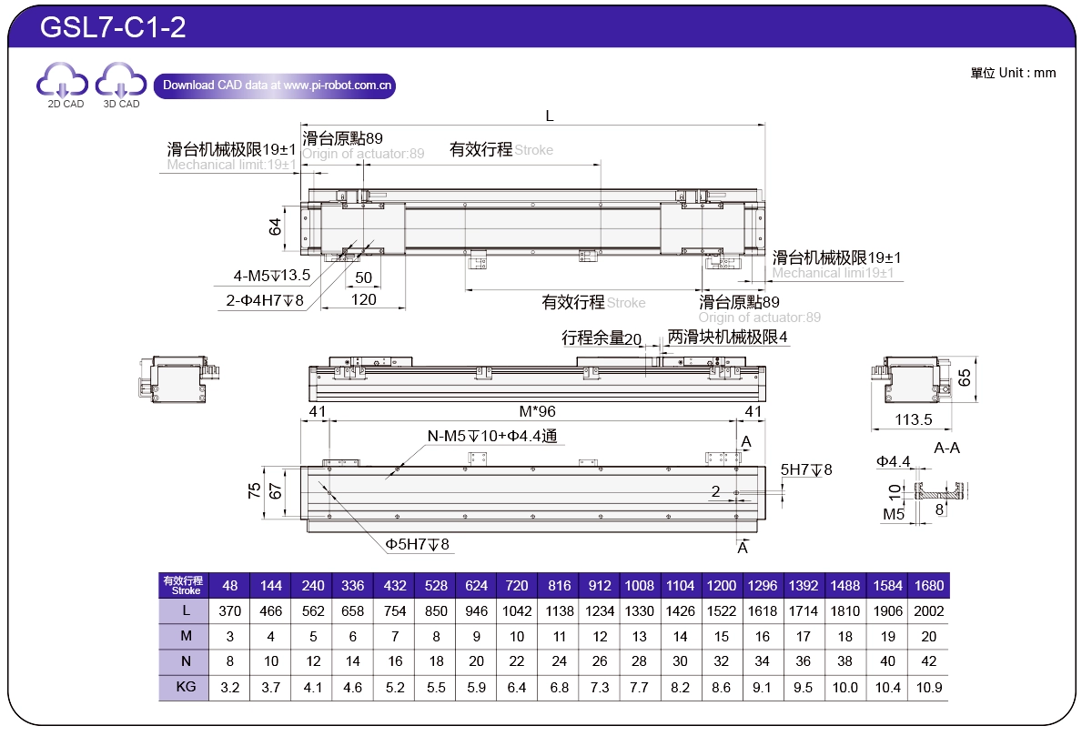 | Piawai | Robot Motor Linear | GSL7 | P27-C1 | 75 | 65 | ±0.003 | 26 | 57 | 3.3 | 6 | 2500 |