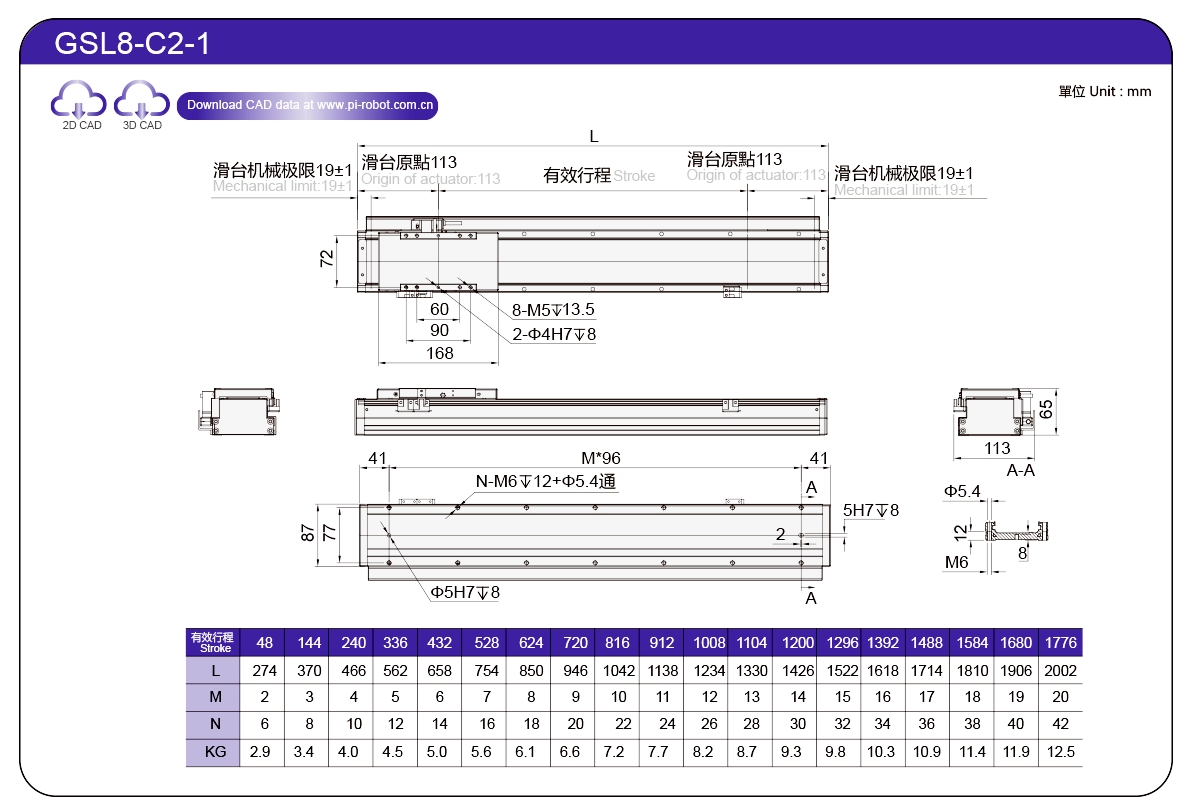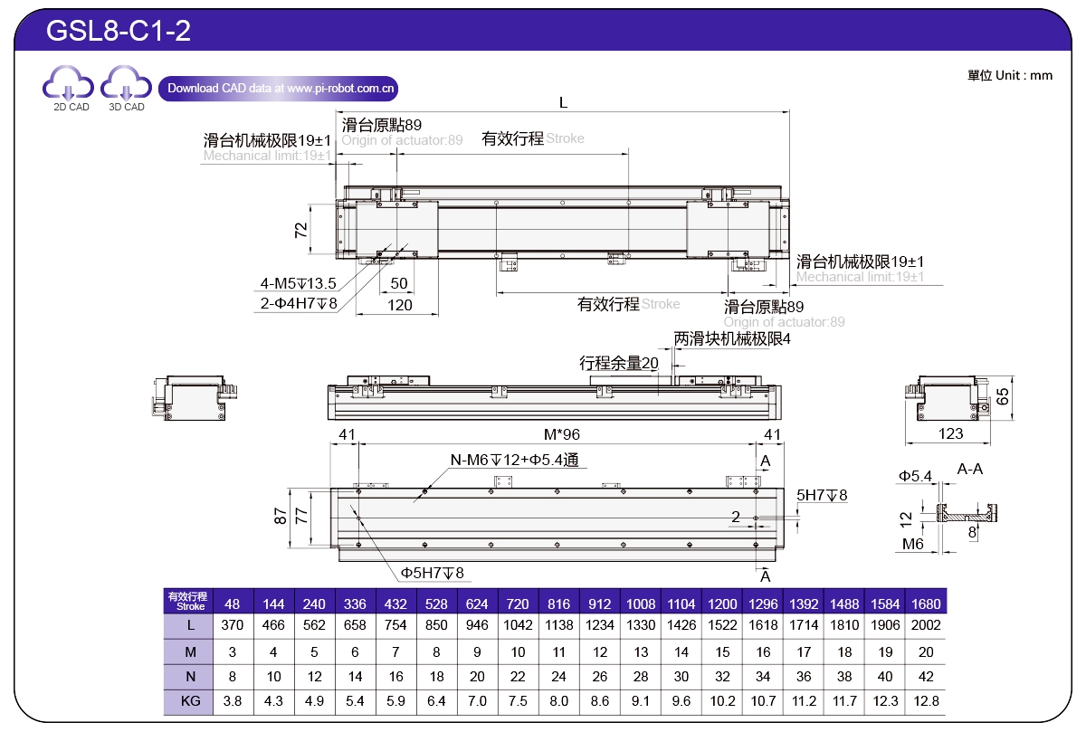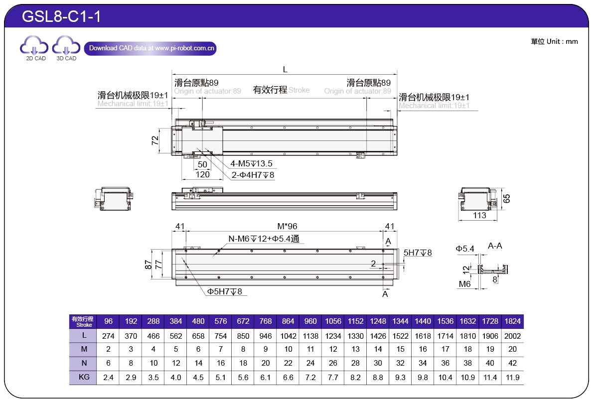 | Piawai | Robot Motor Linear | GSL7 | P27-C1 | 75 | 65 | ±0.003 | 26 | 57 | 3.3 | 6 | 2500 |