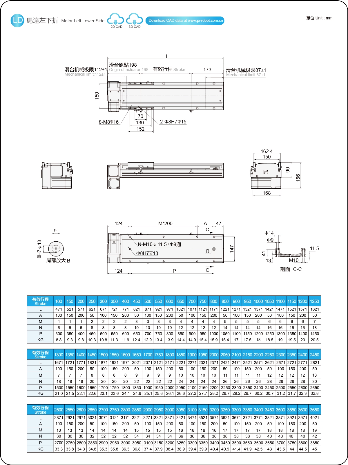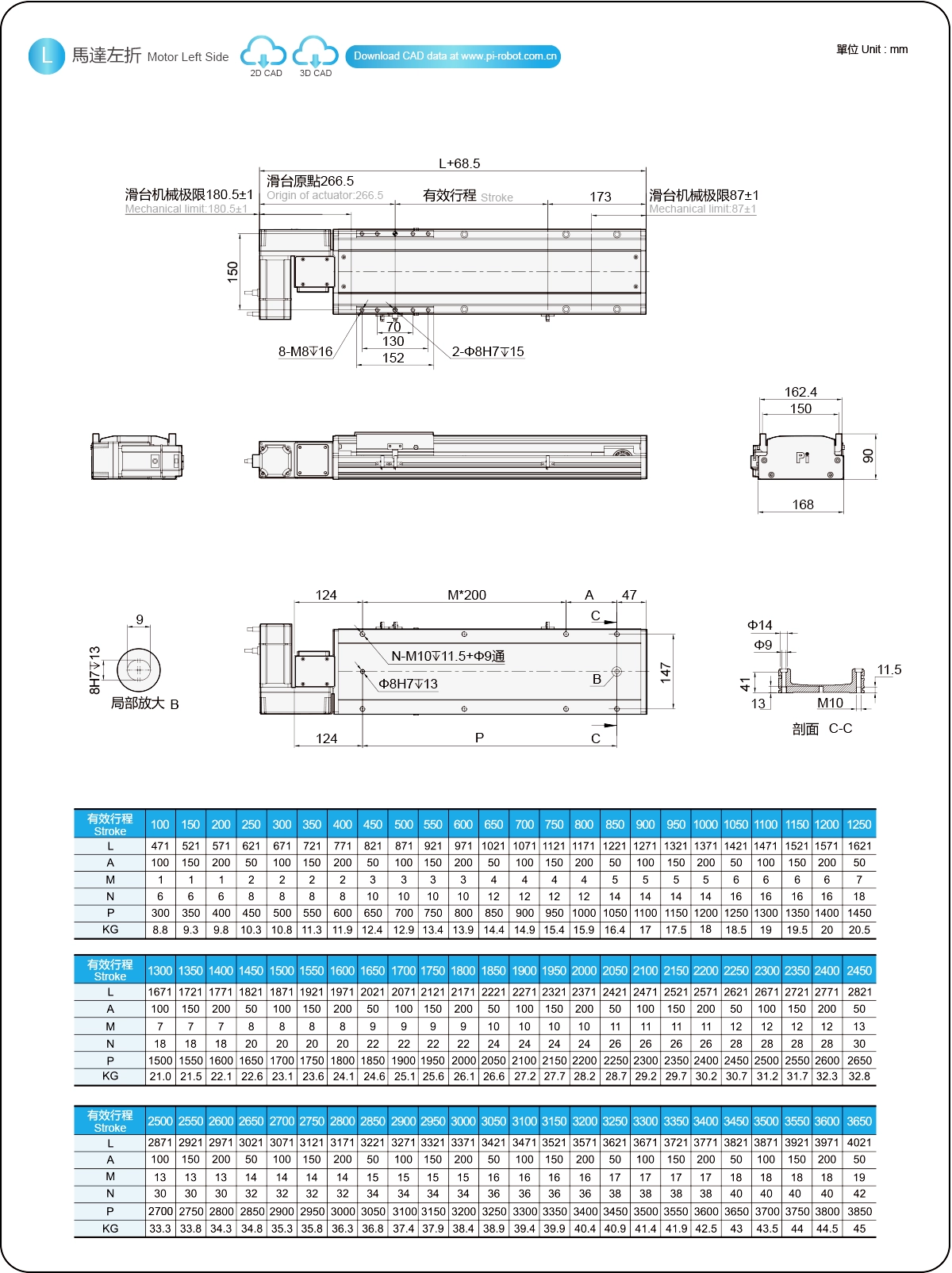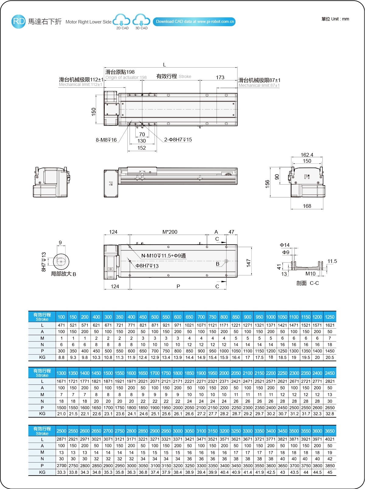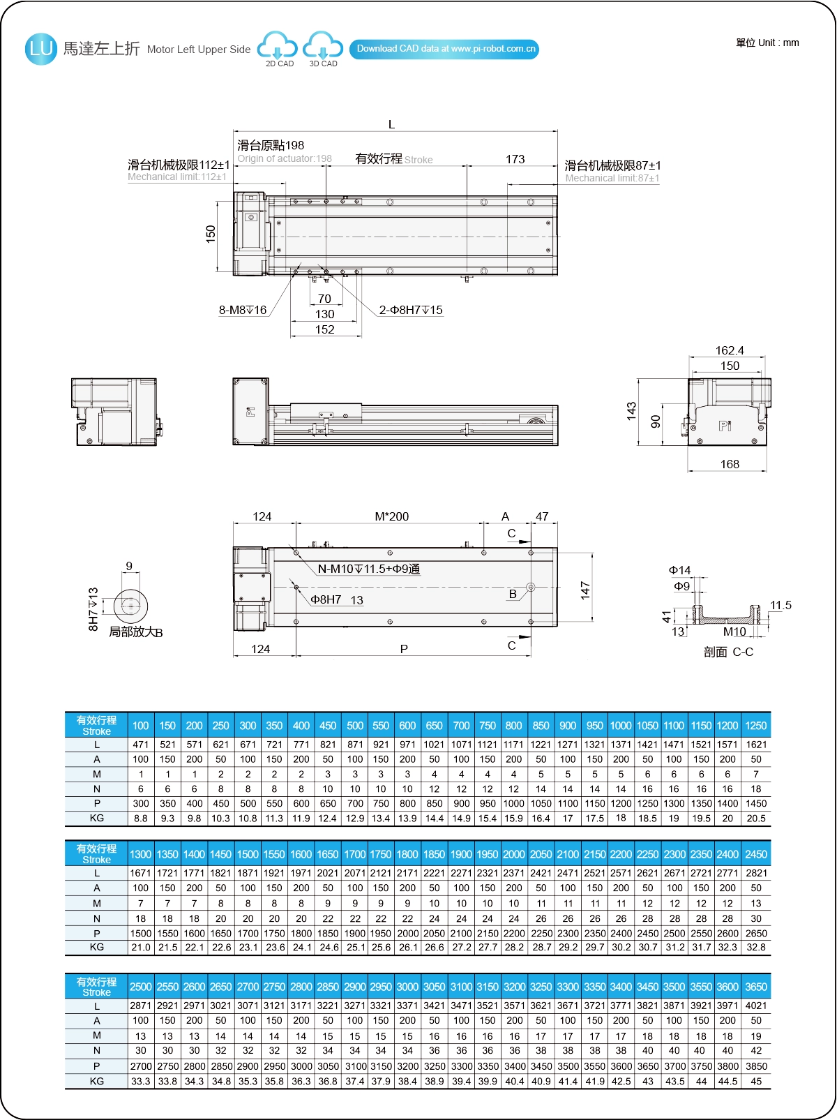 | Pitch Strok (mm) | 100-3650mm/50mm Pitch | ||