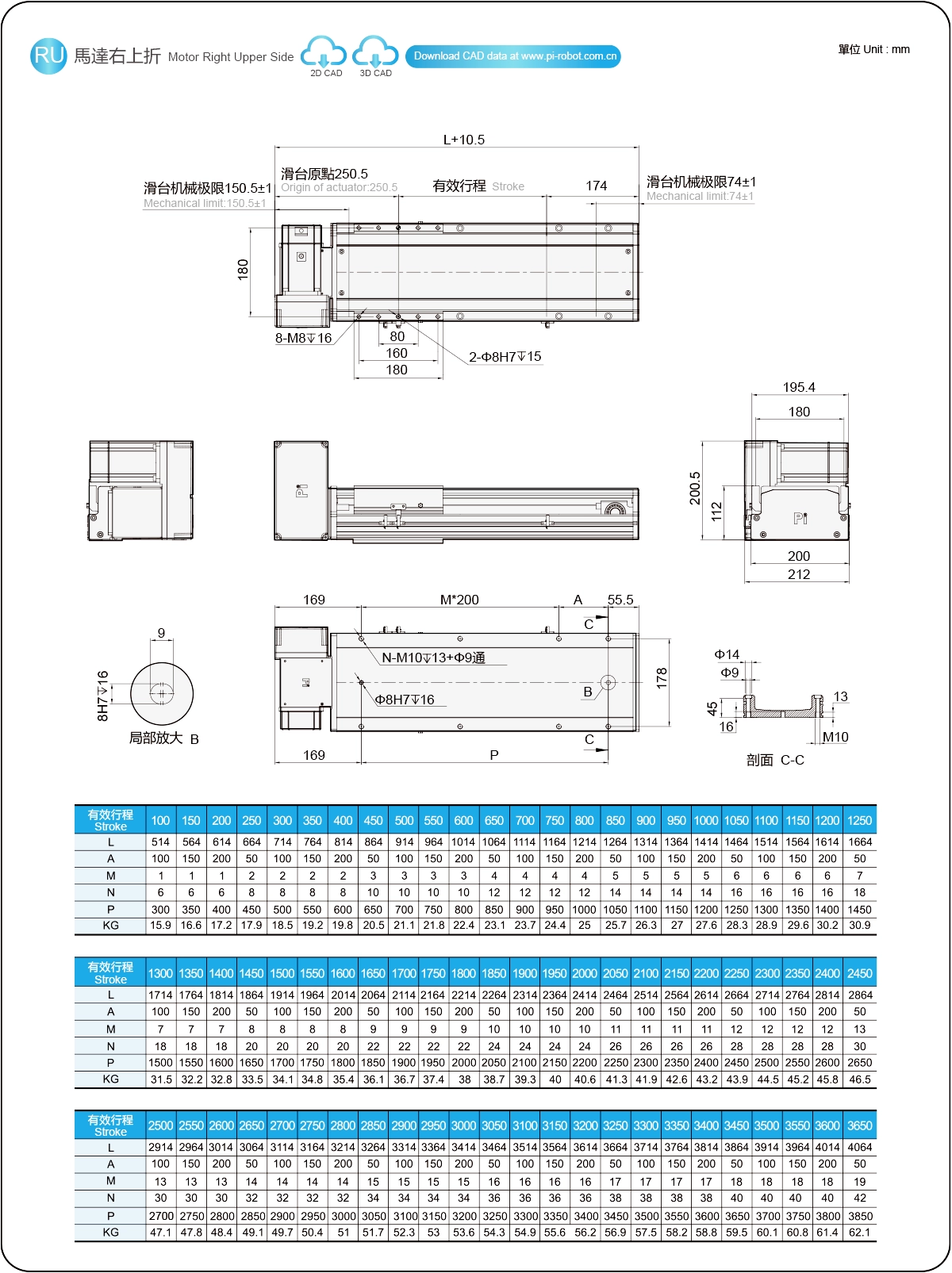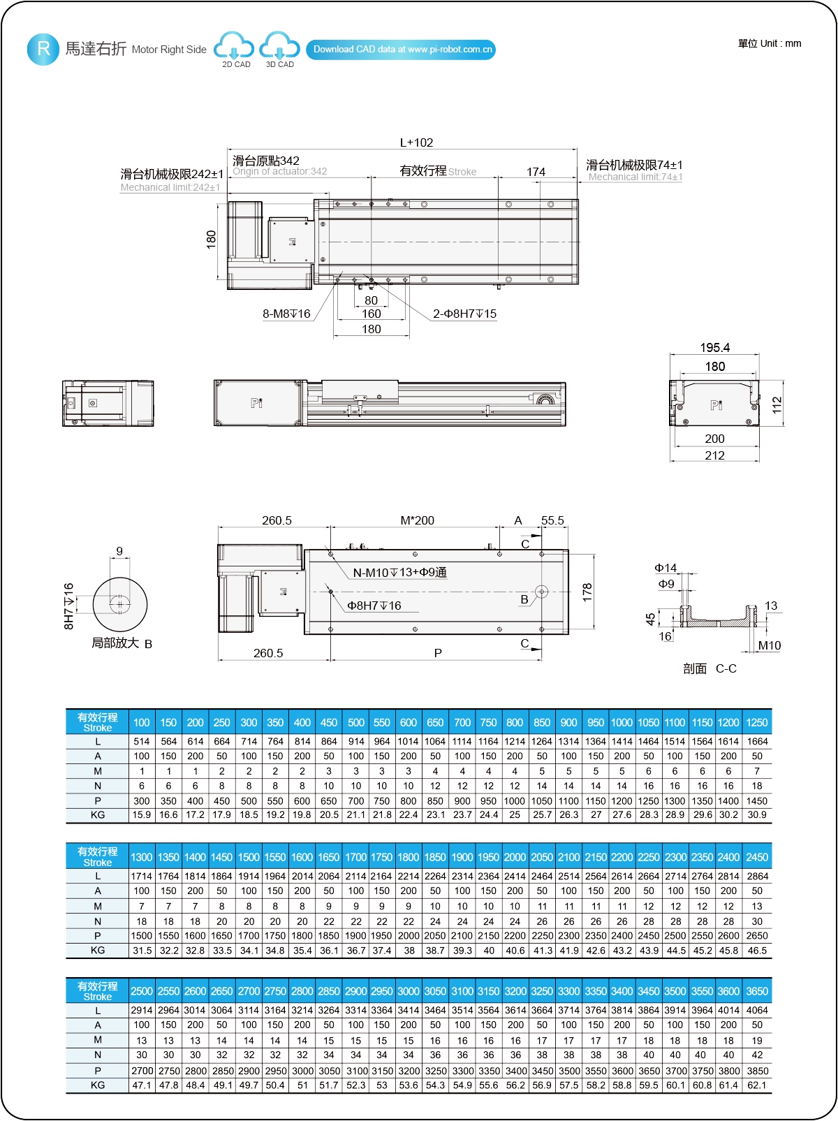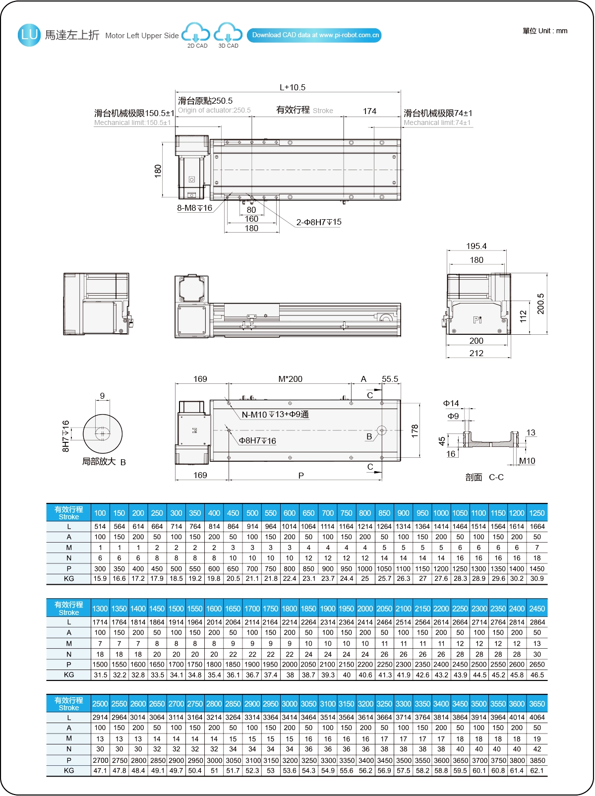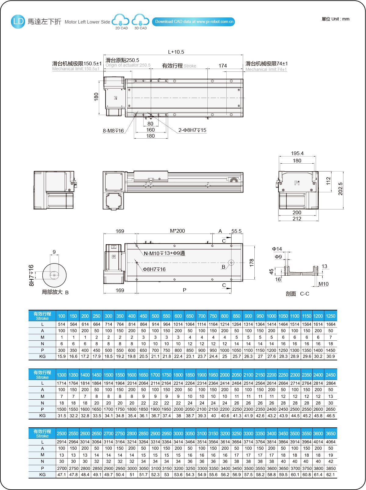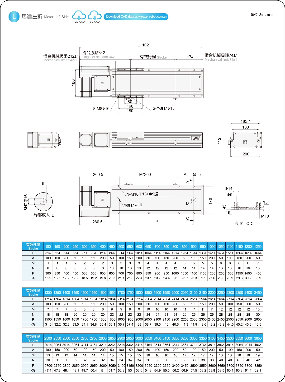 | Pitch Strok (mm) | 100-3650mm/50mm Pitch | ||