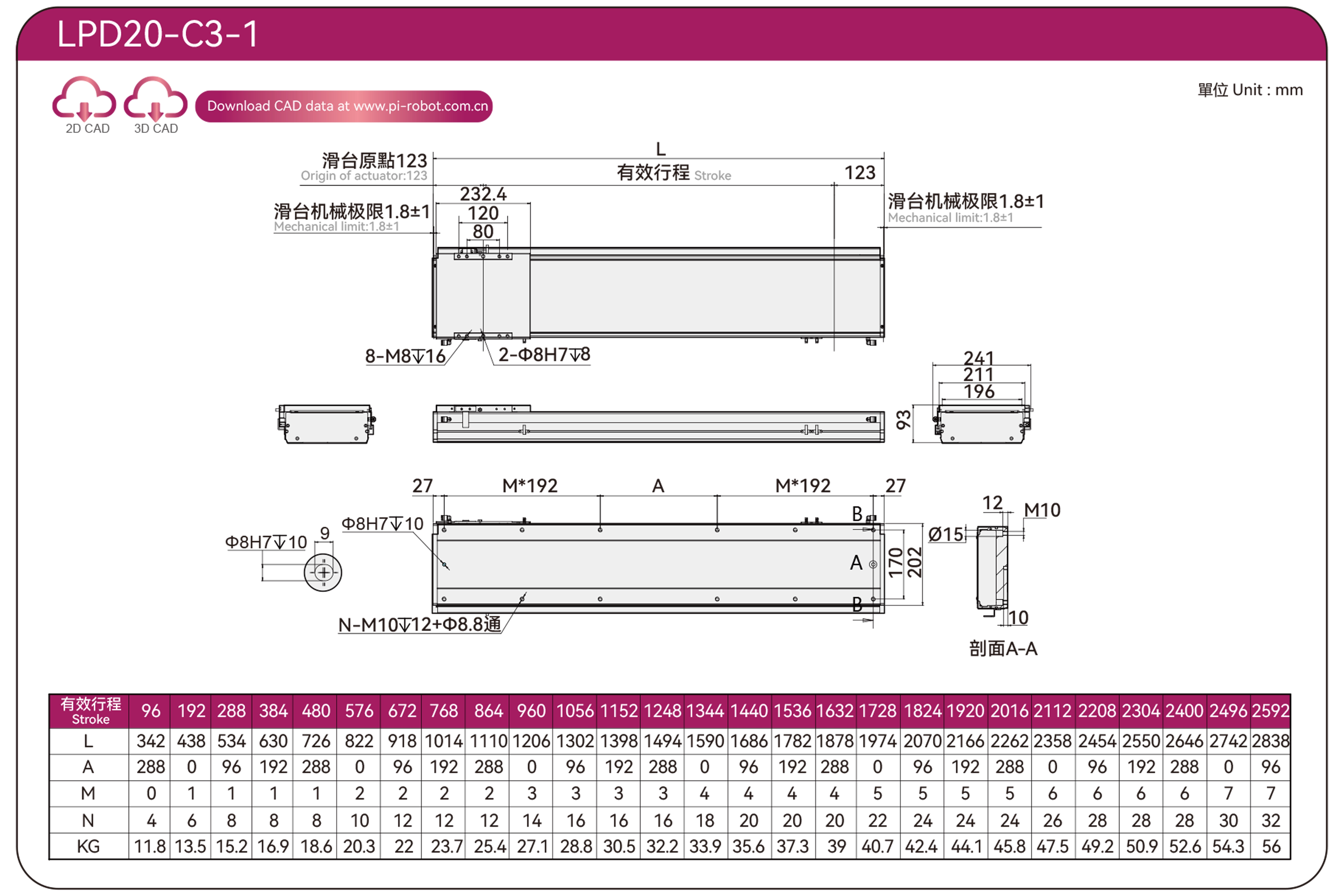 | LPD20 | P88-C3-S | 200 | 93 | ±0.003 | 408 | 897 | 3.3 | 60 | |||