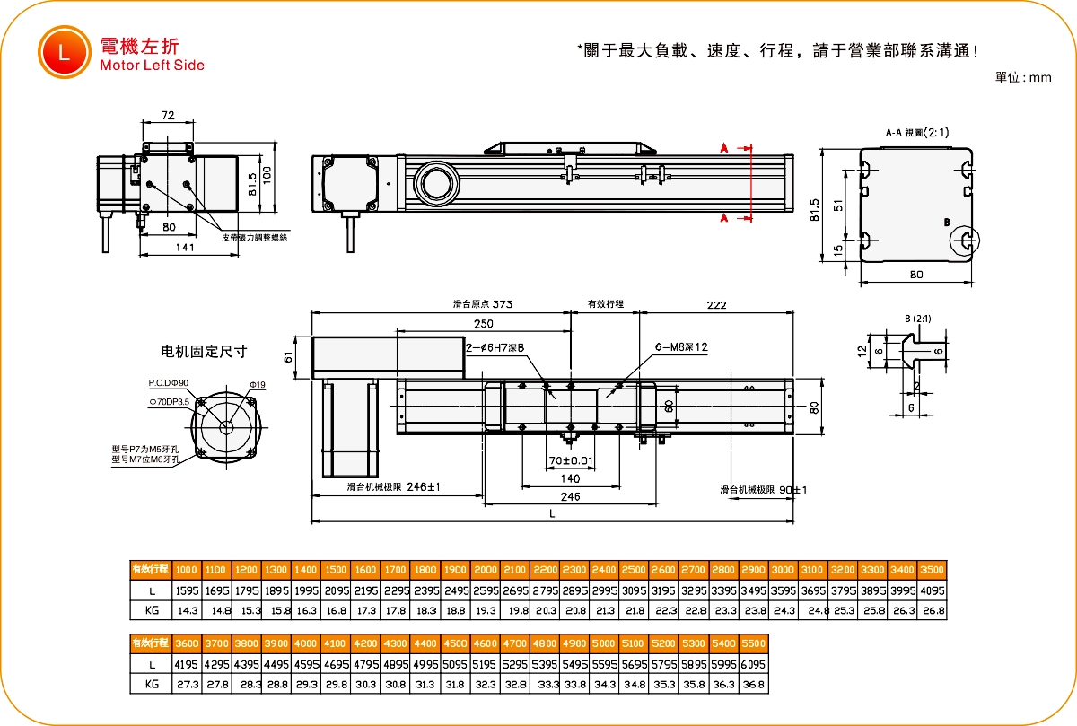 | Pitch Strok (mm) | 100-5500mm/100mm Pitch | |||||||