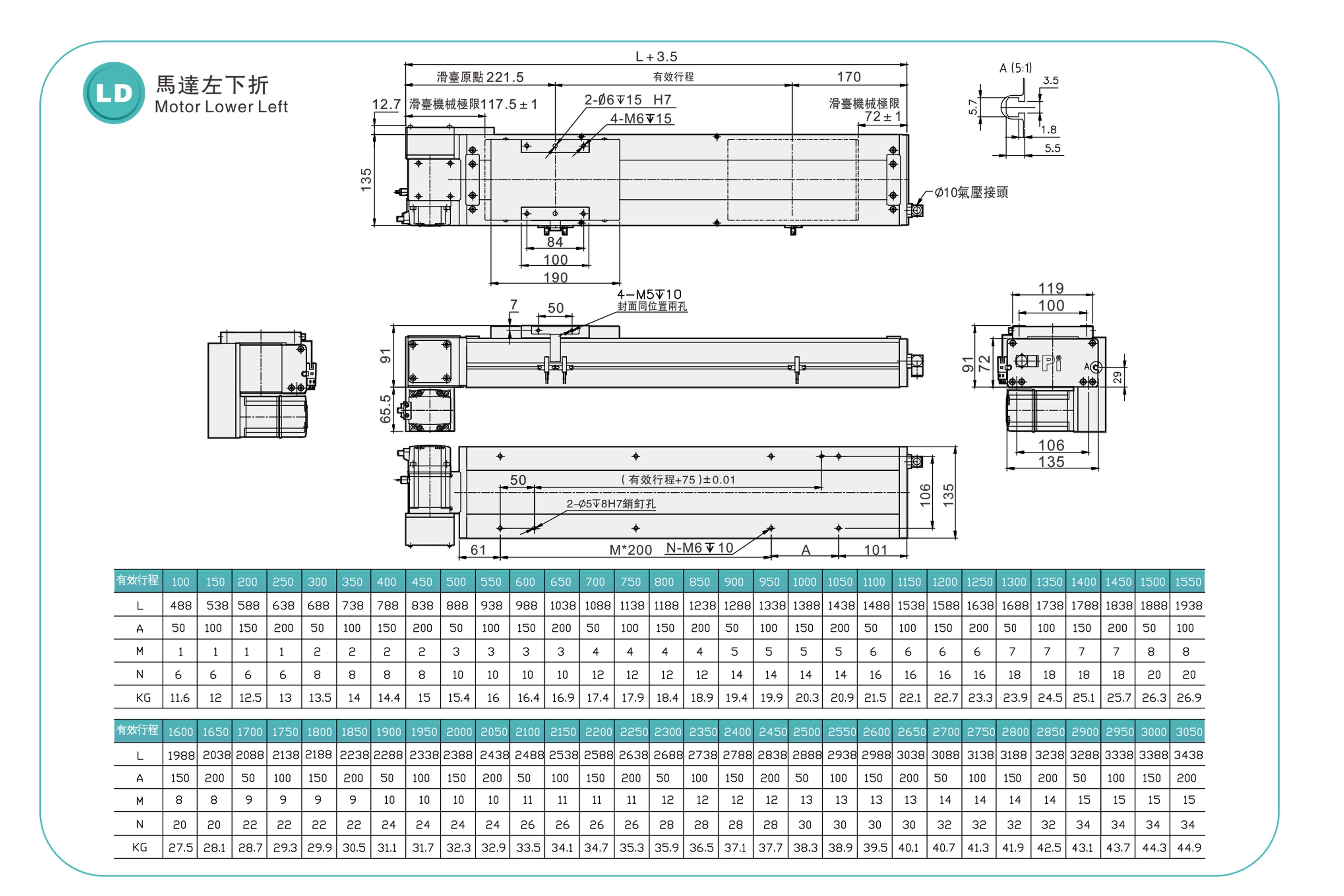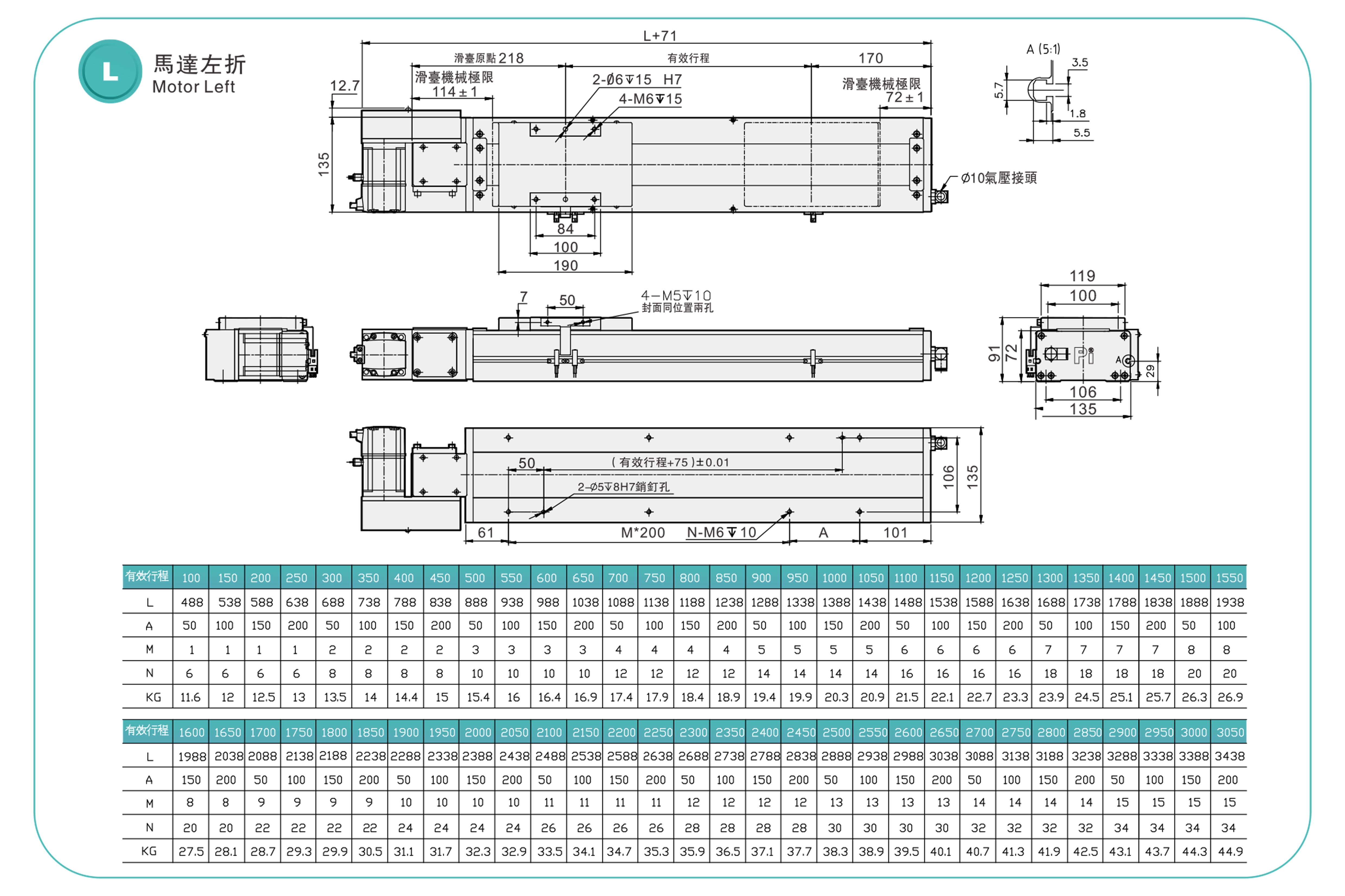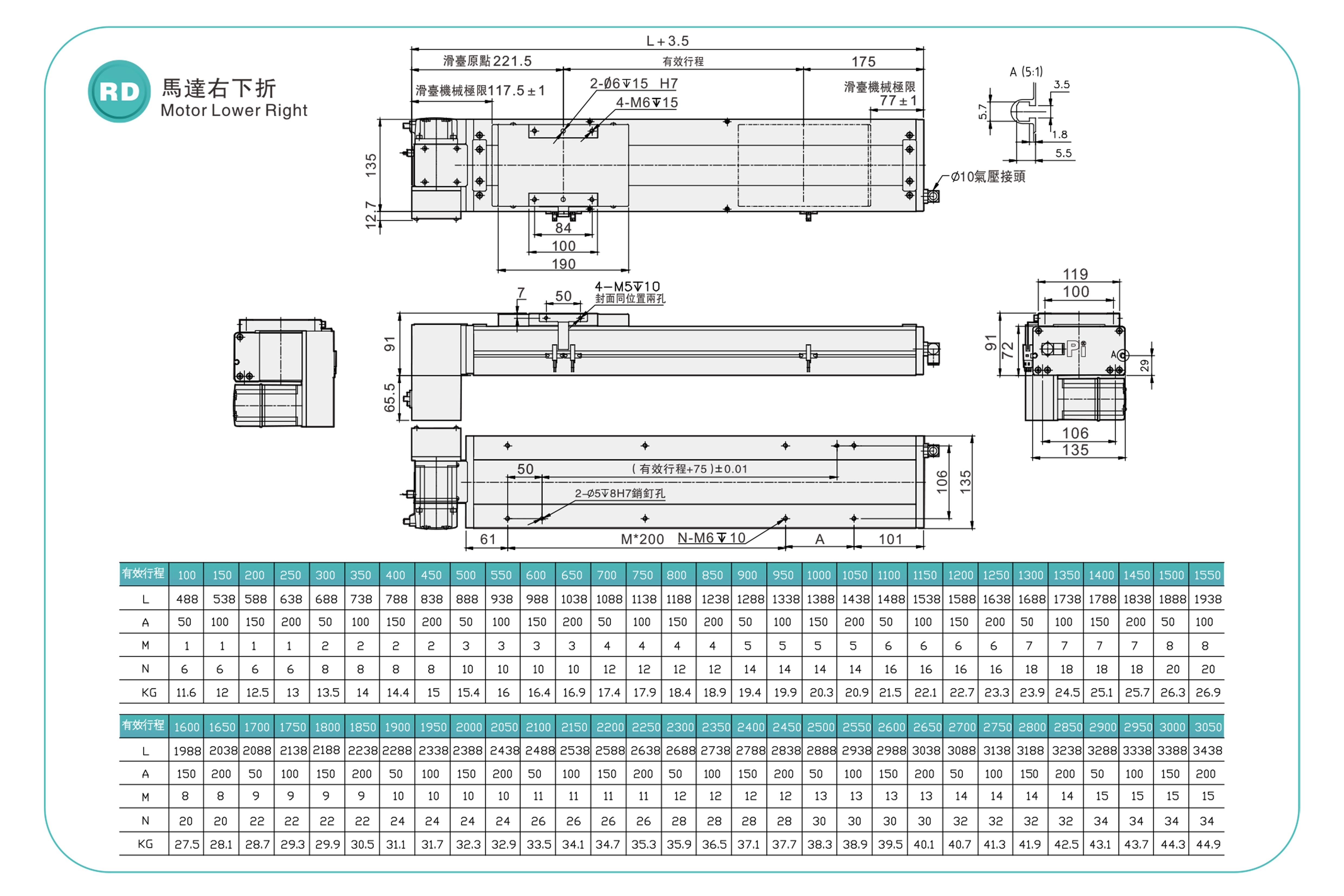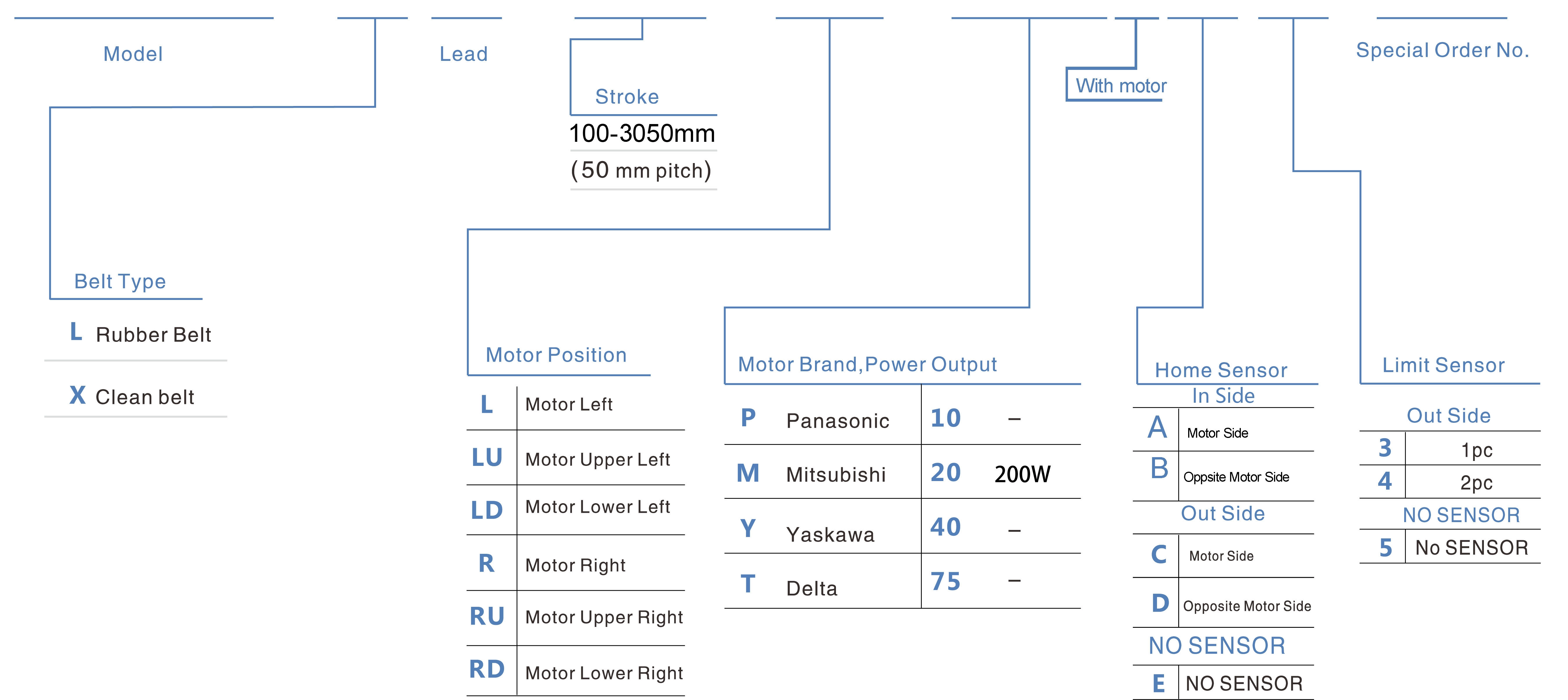 | Pitch Strok (mm) | 100-3050mm/50mm Pitch | ||