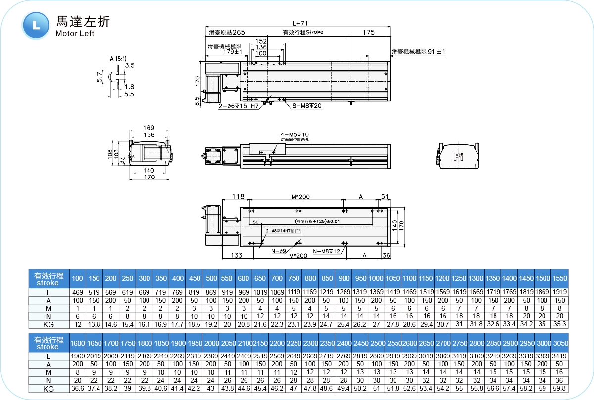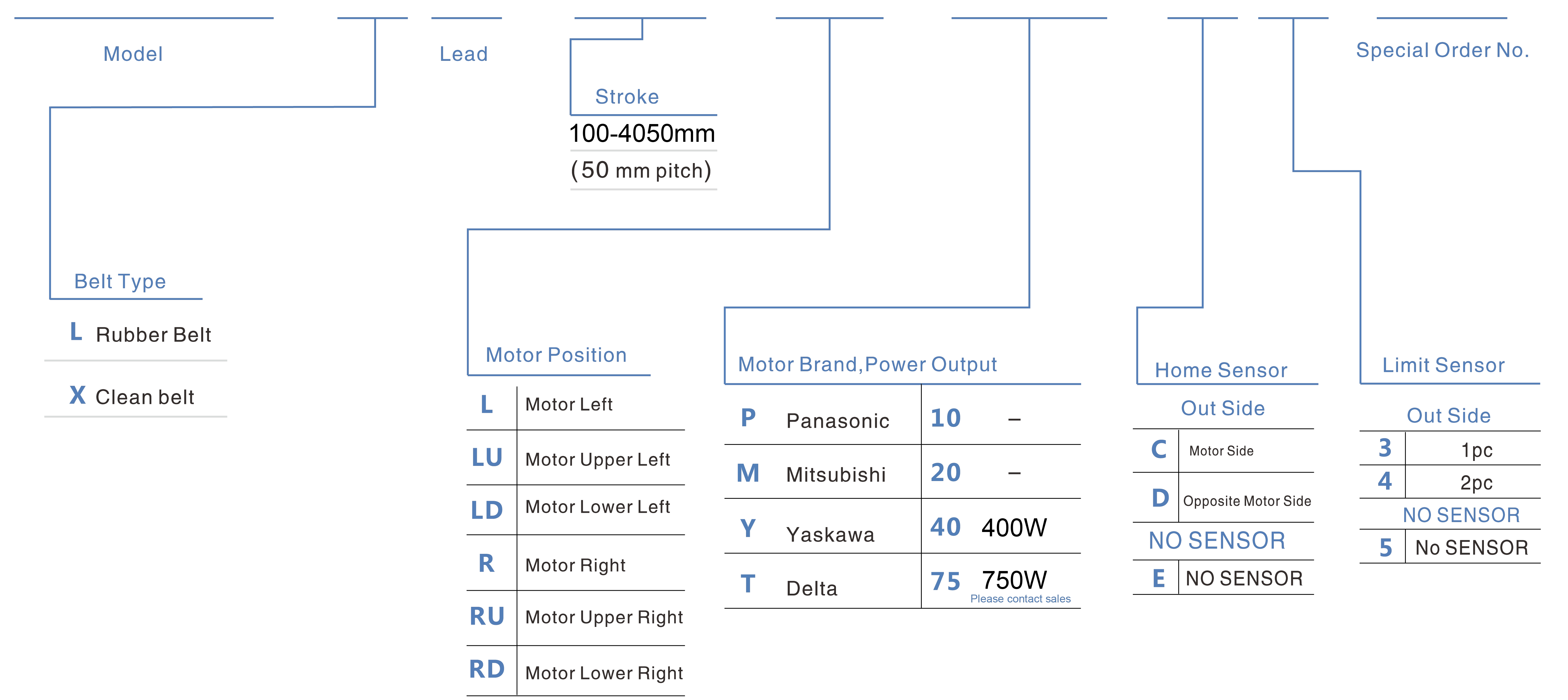 | Pitch Strok (mm) | 100-4050mm/50mm Pitch | ||