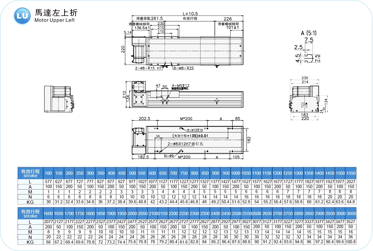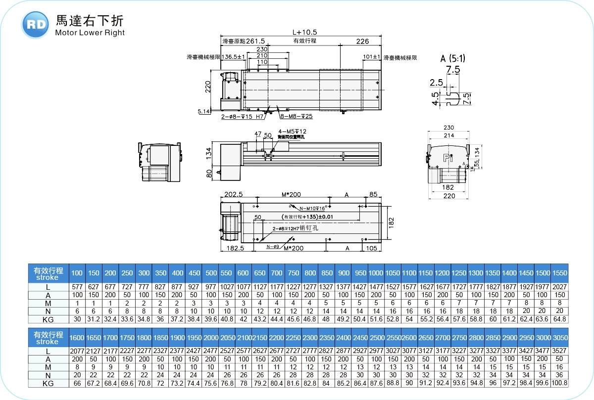 | Pitch Strok (mm) | 100-4050mm/50mm Pitch | ||