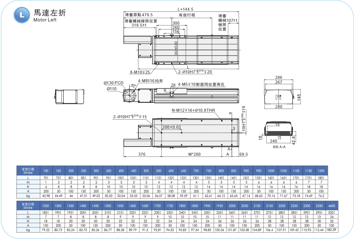 | Pitch Strok (mm) | 100-4600mm/50mm Pitch | ||