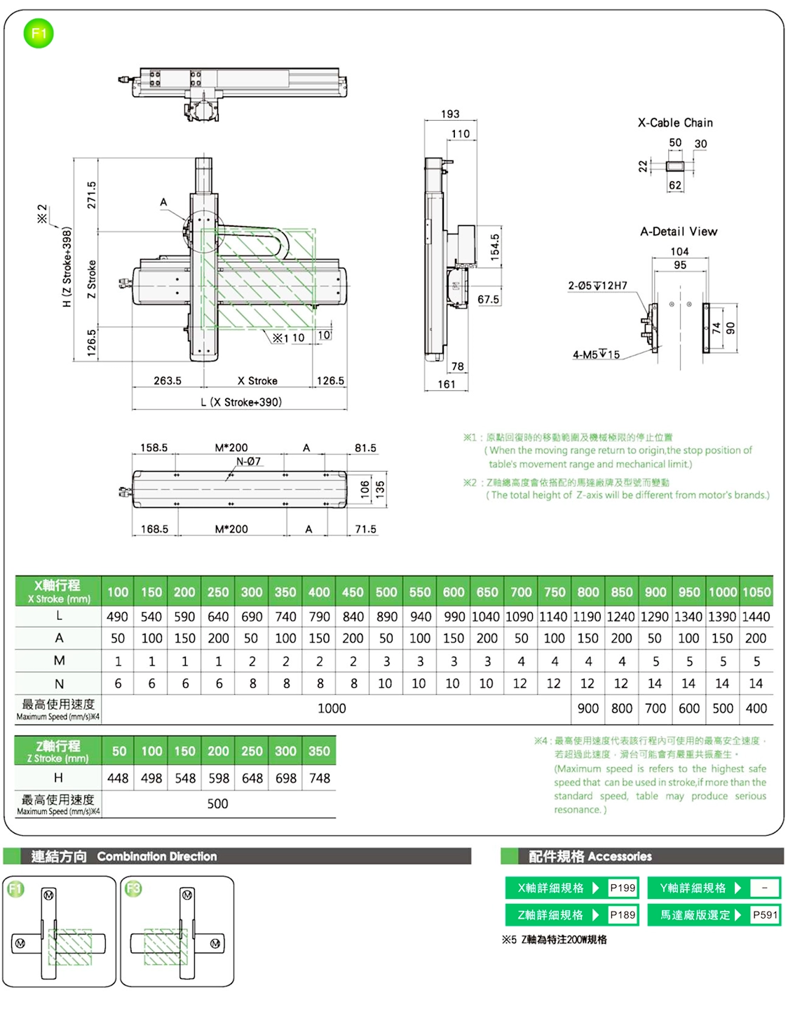 | Gunakan Di Mana | Mod Dipacu | Spesifikasi | Gabungan | Nombor Paksi | Kelajuan maksimum (mm/s) | Strok (mm) | ||||