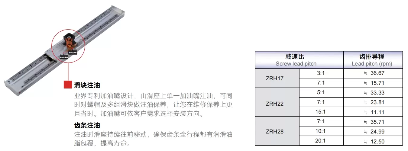 Semua siri boleh disapu minyak secara luaran tanpa perlu menanggalkan penutup. Sistem penyimpanan minyak pelincir sendiri boleh dilengkapi dengan spesifikasi nisbah pengurangan dan plumbum yang sesuai mengikut beban dan kelajuan yang berbeza.